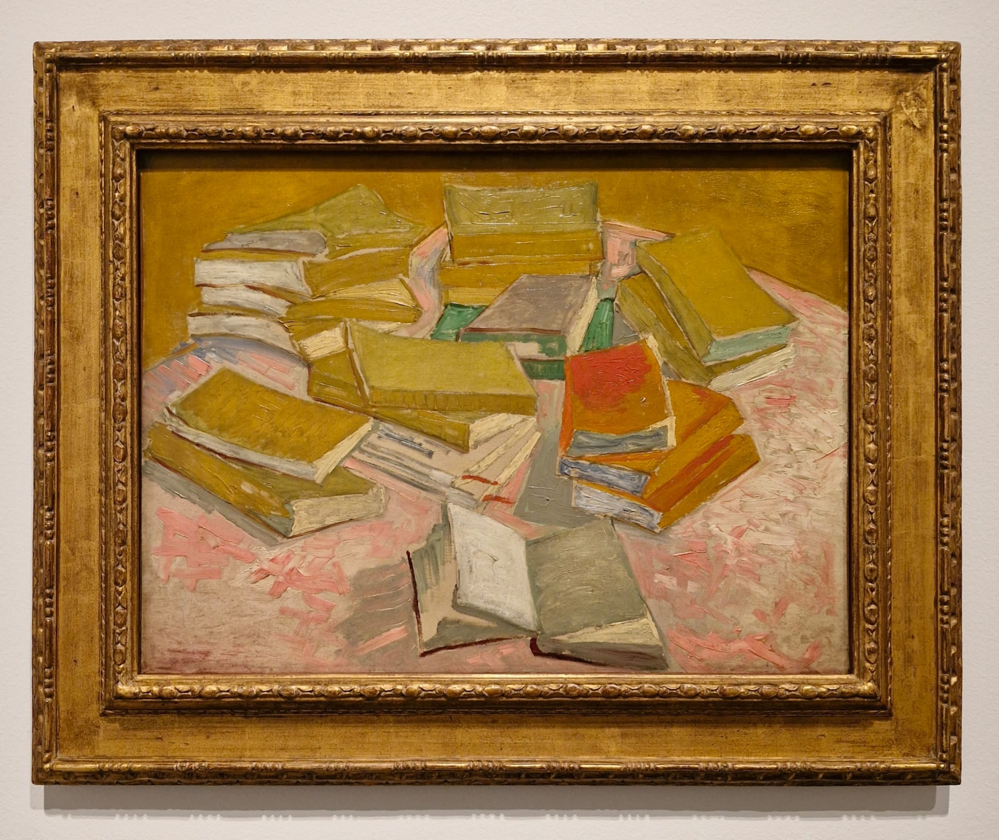 Though the 80-year-old giant of contemporary art is given equal listing in the title with the 19th-century post-Impressionist legend — the show is supported by White Cube, which happens to be exhibiting the former concurrently — the focus is squarely on the former's adoration of the latter throughout his 60-year career. The show begins with the first travel grant Kiefer received as a student, which took him throughout the Netherlands, Belgium, Paris and Arles — what curators Julien Domercq and Natasha Fyffe call “following in van Gogh’s footsteps.” Rather than exploring "influence," though, the exhibition is really about Kiefer, who just happens to really, really like van Gogh. For in the exhibition’s three galleries, the latter is short-changed: The full width of the walls in the first and last are dominated by Kiefer’s monumental pieces, which dwarf the single van Gogh work in each room: 1887’s “Piles of French Novels” and 1886’s “Shoes.”