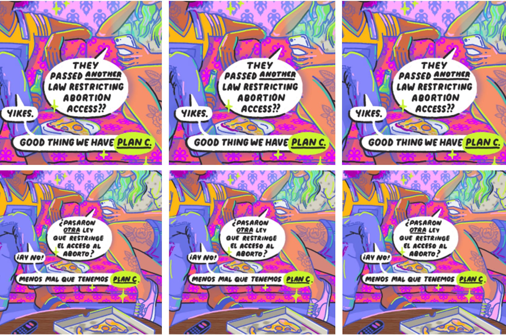 Some states have already banned or restricted abortion, with others expected to follow suit in the coming weeks, but people can still have FDA-approved pills like mifepristone and misoprostol mailed to them. Plan C promotes these services on colorful posters and stickers available for free download, with QR codes linking out to a state-by-state database. Founded in 2015 by women who developed the Plan B pill, the campaign provides research and shipment information for anywhere in the country — including states criminalizing abortion, where police still need a search warrant to open mail.