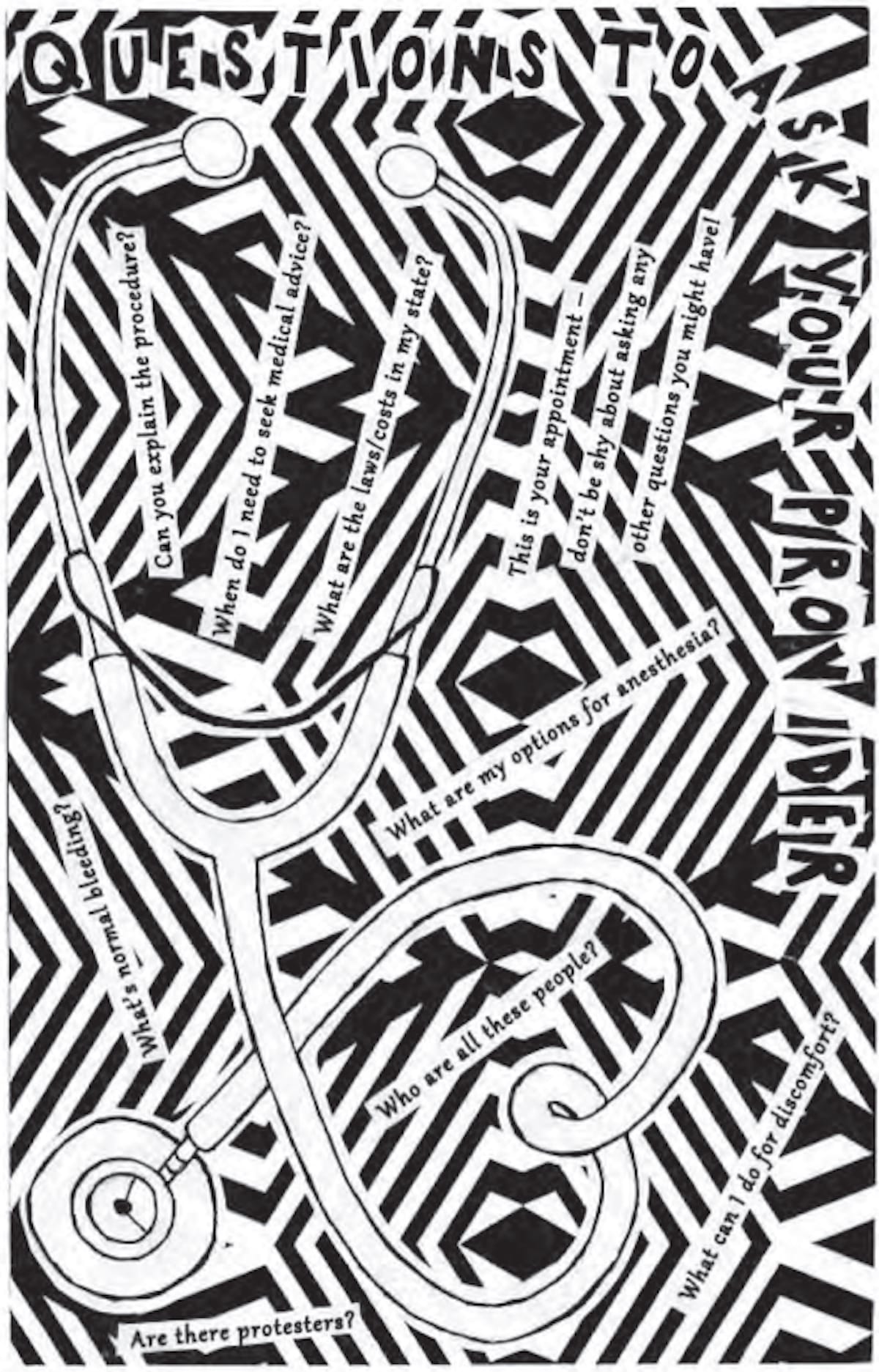 Over the years, art collectives have put together free zines in preparation for this moment, most notably DIY Doula: Self-Care for Before, During, & After Your Abortion by The Doula Project. As Director of the Digital Defense Fund Kate Bertash wrote earlier this year, many US zines are influenced by those that emerged from the Latin American "Green Wave" movement, which has defied longstanding government clampdowns for decades. These materials, Bertash writes, "counteract the corporate search engine paradigm" and "hold the promise of an alternative system of information, one which reaches across a broad range of organizations, libraries, community spaces, and institutions even beyond reproductive healthcare spheres."