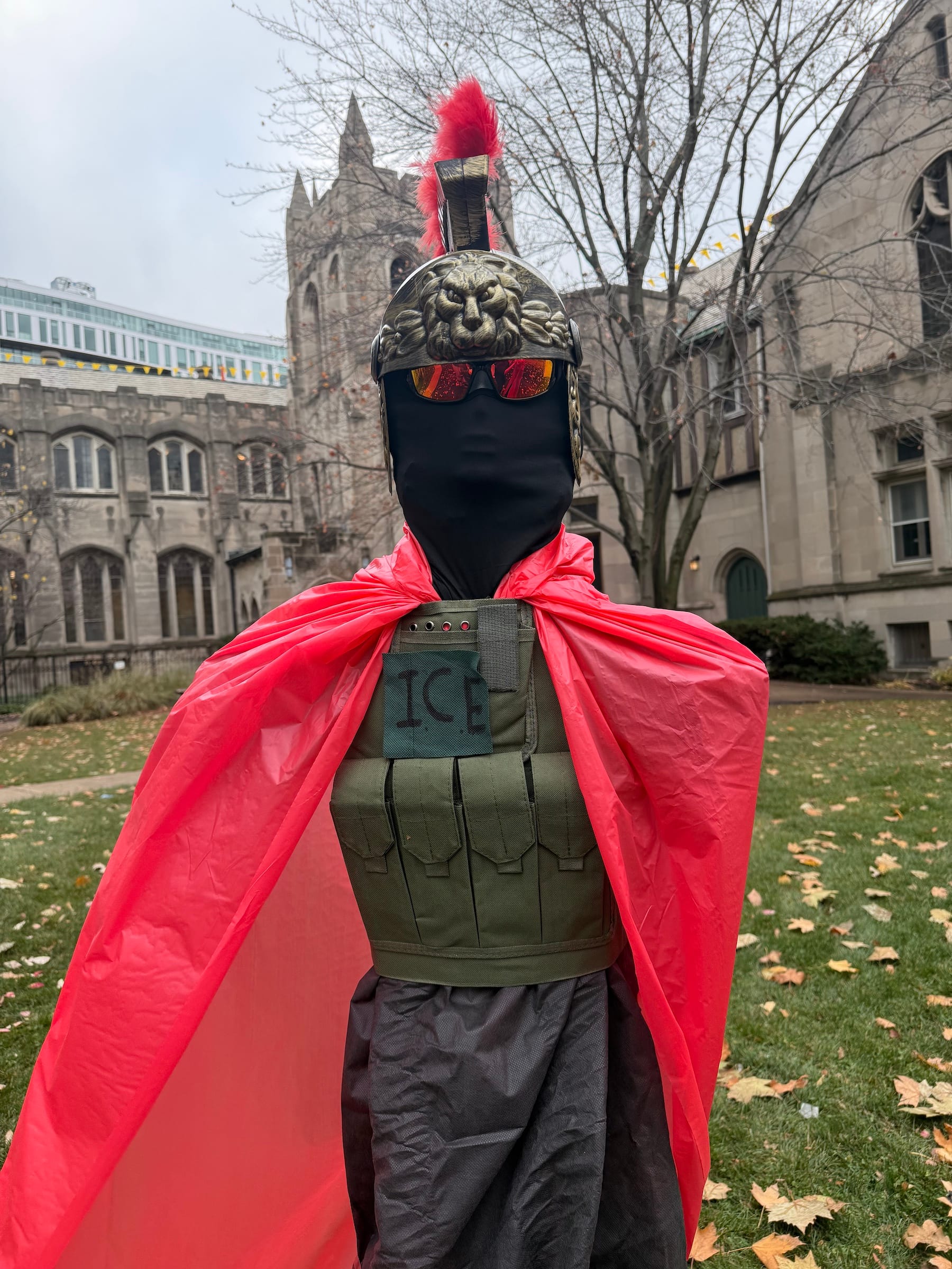 Another Nativity scene featuring a zip-tied baby Jesus and Mary and Joseph wearing gas masks at the Lake Street Church of Evanston went viral. The Holy Family is surrounded by Roman centurions whose armor is accented with black full-face masks, sunglasses, and vests bearing the word ICE.