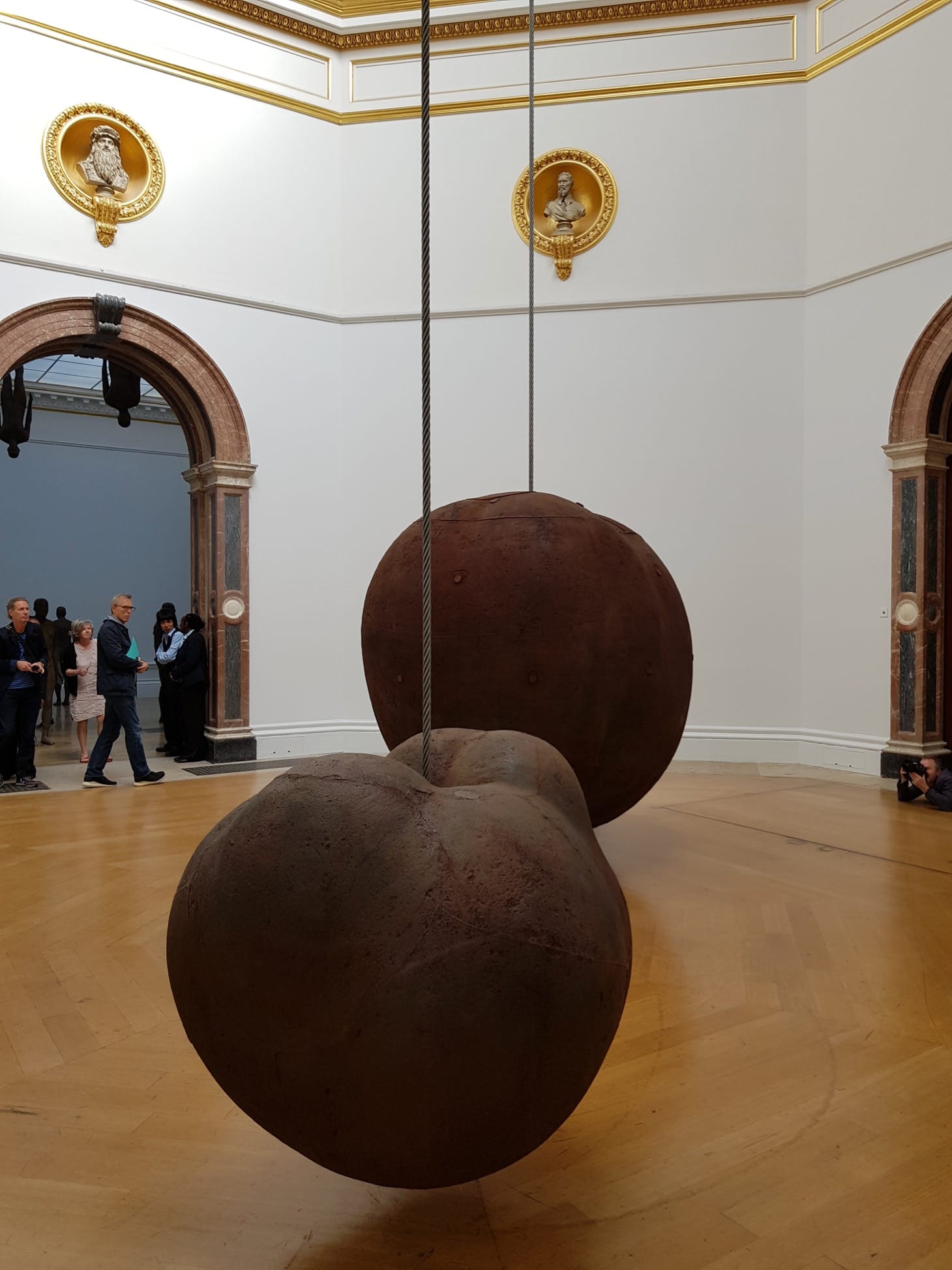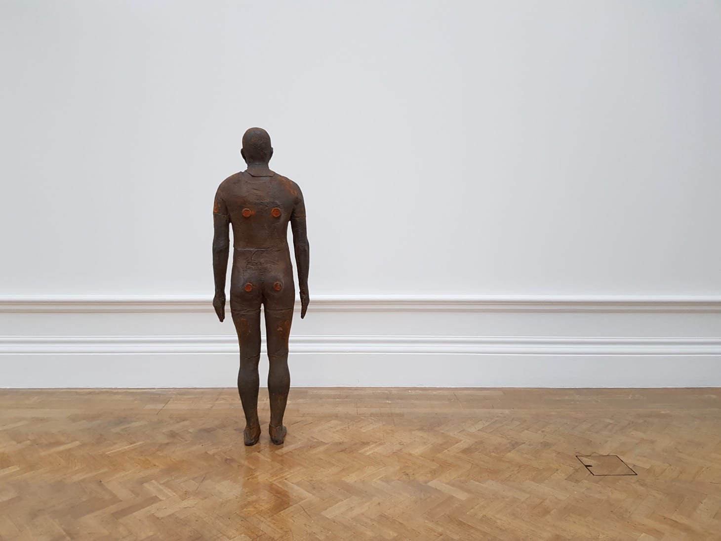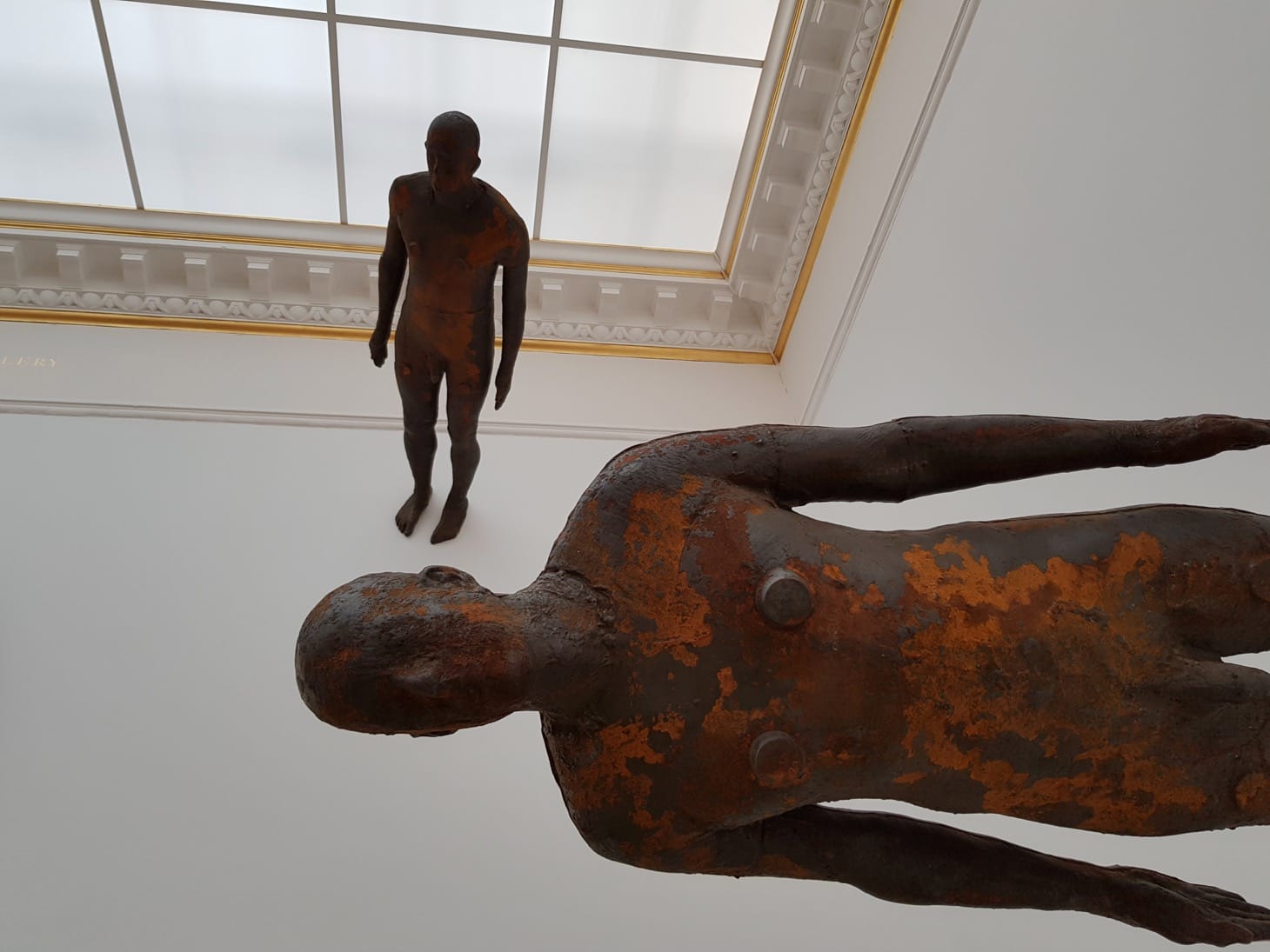 The exhibition plays with scale throughout, particularly in relation to the human. At one end of the spectrum is “Iron Baby” (1999), a life-sized cast of a newborn baby, placed outside in the Royal Academy’s grand courtyard. Laid directly on the paving stones, this tiny sculpture is easily missed, but once seen, exerts a strong emotional pull.
