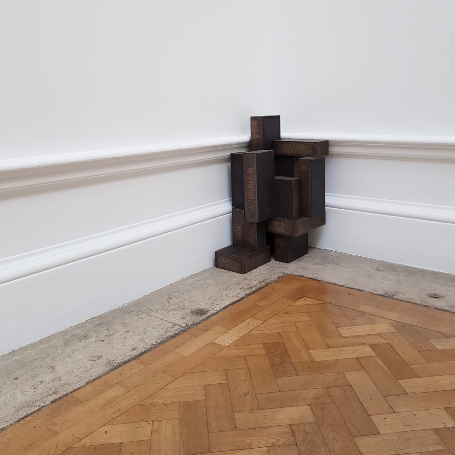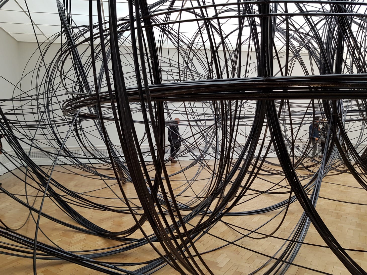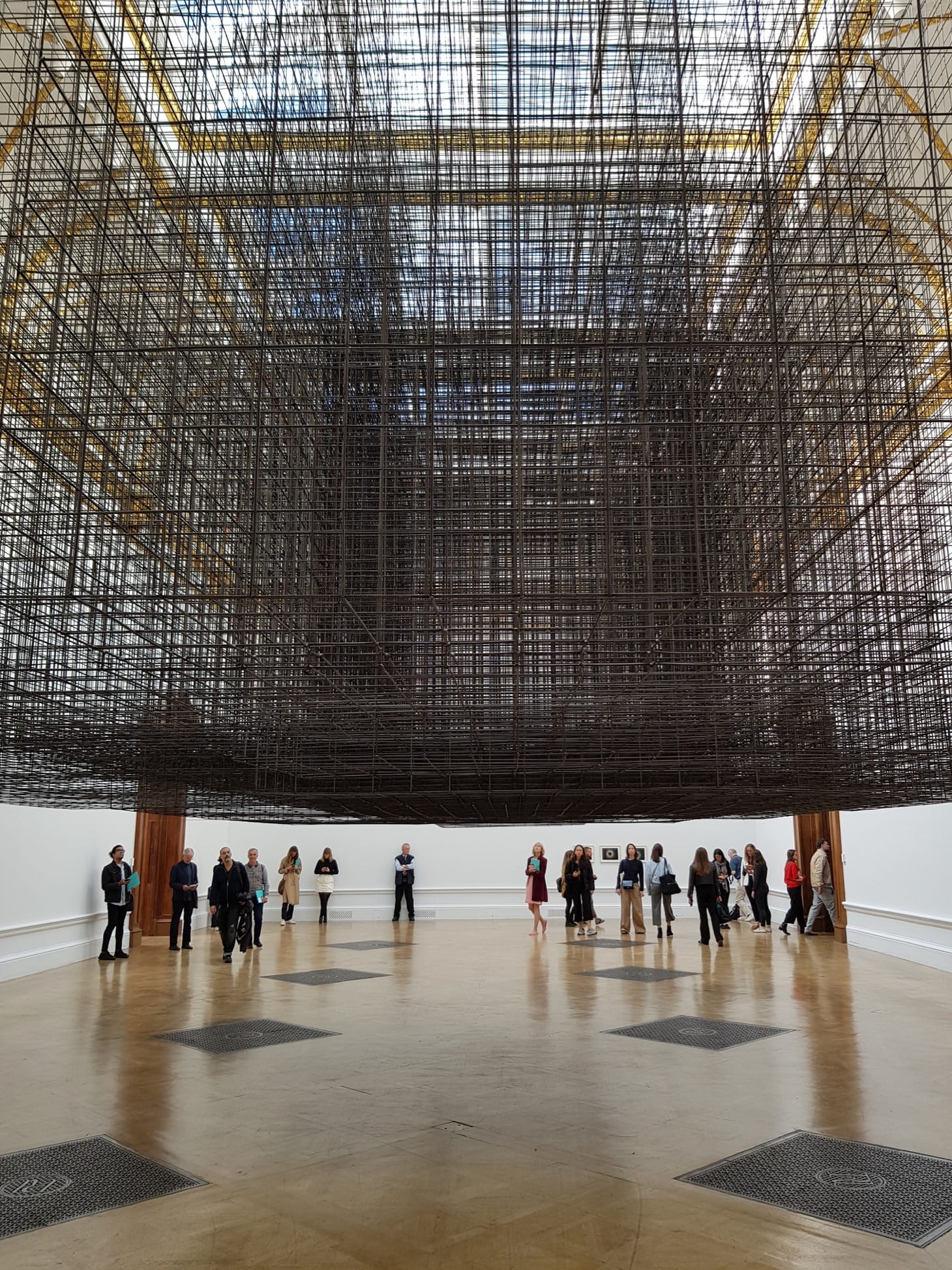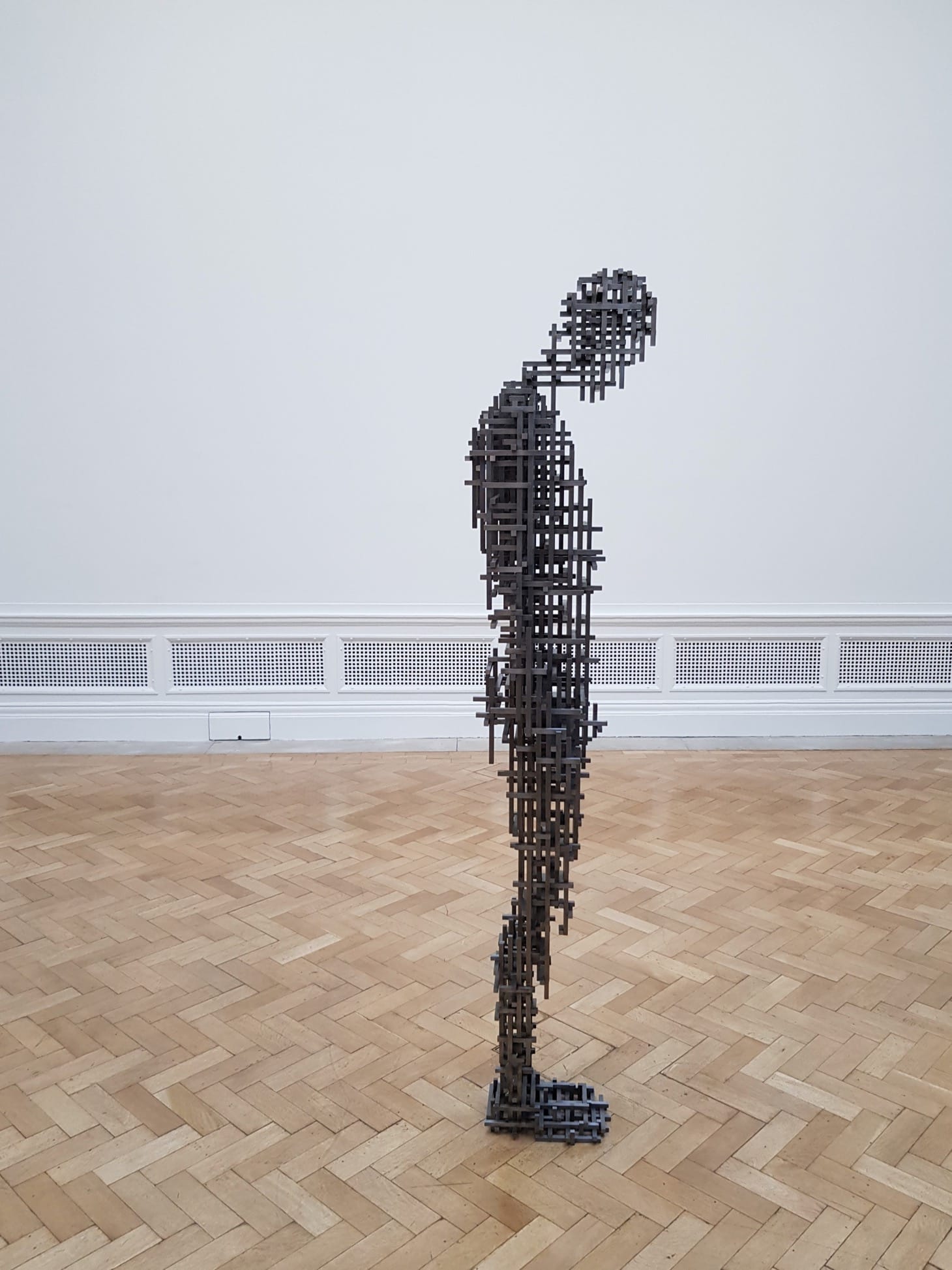 The Royal Academy retrospective offers several opportunities to experience Gormley’s whole-room installations, many of which have been created or reimagined for the exhibition. These include “Clearing VII” (2019), which consists of several miles of coiled aluminum tubing. Visitors are encouraged to pick their way through the twists and turns; the jangling sounds it makes and the scuff marks it leaves on the room’s pristine white walls are all part of this multidimensional “drawing in space”, as the exhibition’s curator Martin Caiger-Smith describes it in the accompanying catalogue.