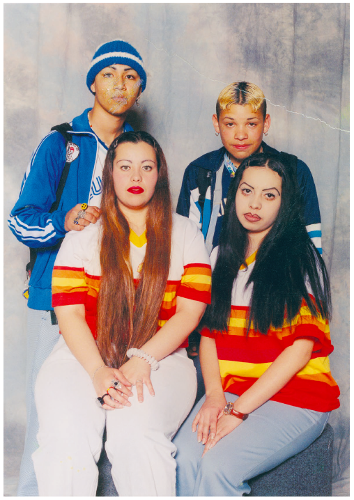 While the built environment may not always be conducive to community or cultural life, the issue features examples of people creating spaces of their own to accommodate their needs or aspirations. Artist Guadalupe Rosales curates and runs the Veteranas & Rucas and Map Pointz Instagram accounts, digital archives of 1990s Latinx youth culture and party crews. The images document the lives of young people in the face of police violence, anti-immigrant legislation, and other structural inequities that led them to form underground networks and forms of cultural expression. Some of the portraits are taken in the glamor-shots style of photo studios once commonly found in suburban malls. The wallet-sized photographs, often taken with hazy filters and ambient backdrops, date back to a time before social media was available for young people to shape their self-image.