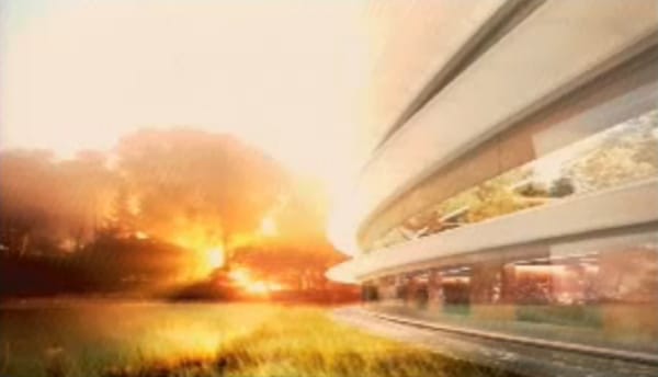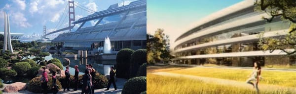 The building seems fitting for a company that loves grand geometric gestures (think the Fifth Avenue glass cube in Manhattan or the almost button-less simplicity of its iDevices) and is currently located at a very futuristic sounding address, 1 Infinity Loop.