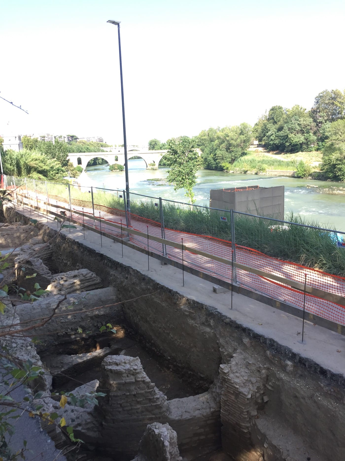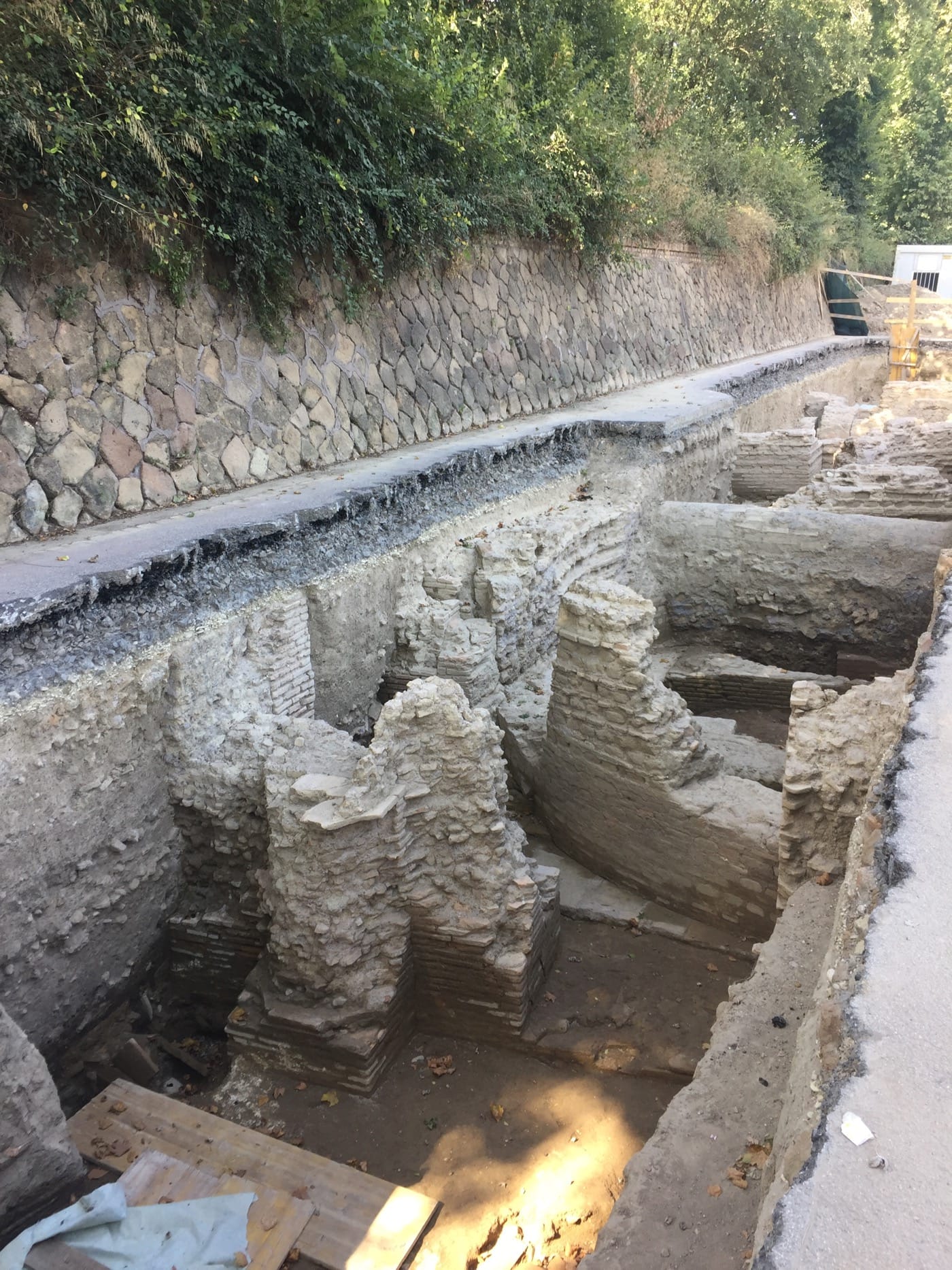 The trench is about 20 meters in length but only two to three meters wide, so [it is] difficult to interpret much, especially as there are later medieval drains cutting through the trench. I think the report of a medieval church or basilica is still very much a hypothesis. The initial interpretation was a villa but has been revised. My feeling is that the site is closely associated with the river, perhaps with commerce. That said, I would have expected it in the opposite bank of the Tiber. The apsidal structure in terms of construction technique looks late antique, plus [there is] reuse of [earlier] material. And from what has been said, the burials are four- to fifth-century AD.