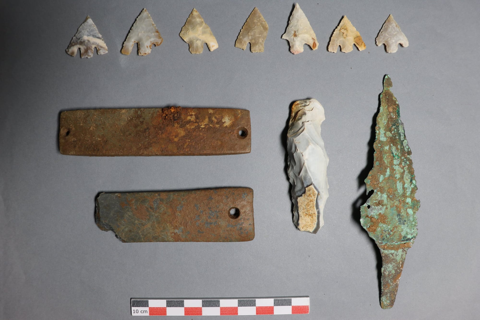 While the team has not yet pinpointed the age of the circular structure, nearby findings have led them to believe that the monument was occupied from the Neolithic Age (around 7000 to 1700 BCE) to the first Iron Age (around 1200 BCE to 550 BCE). Inside the rounded construction, archaeologists discovered a bundle of seven flint arrowheads, a pair of archer's arm guards, a flint lighter, and a dagger made of a copper alloy that they suspect originate from several historic eras, including the Bell Beaker period approximately 4,500 years ago.