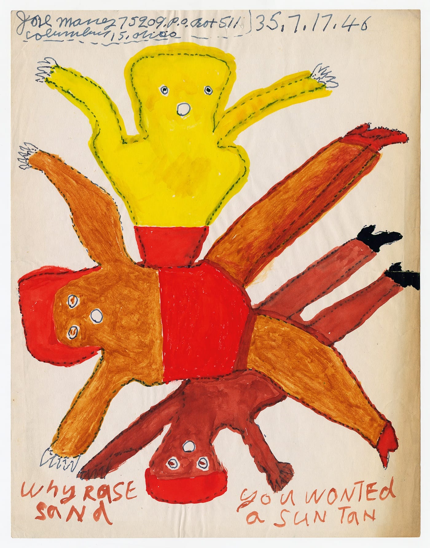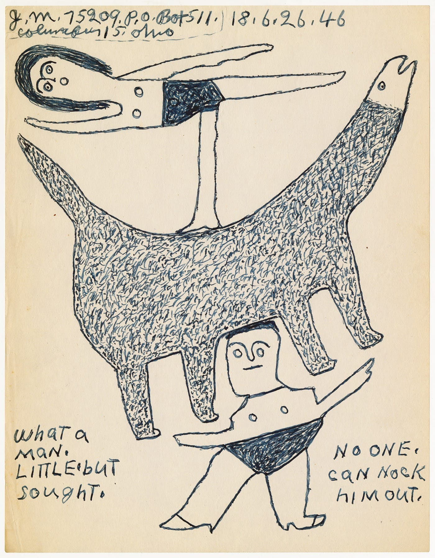 “I was familiar with outsider art and when I saw Massey’s drawings, I flipped,” de Lellis said. “I felt that the time to bring them forward publicly had come, given current discussions about race, gender roles, and a reconsideration of how American history has been written and taught. In its own ways, Massey’s art sheds light on how these subjects were perceived or understood by a person of his time and of his background who lived in his particular circumstances.”
