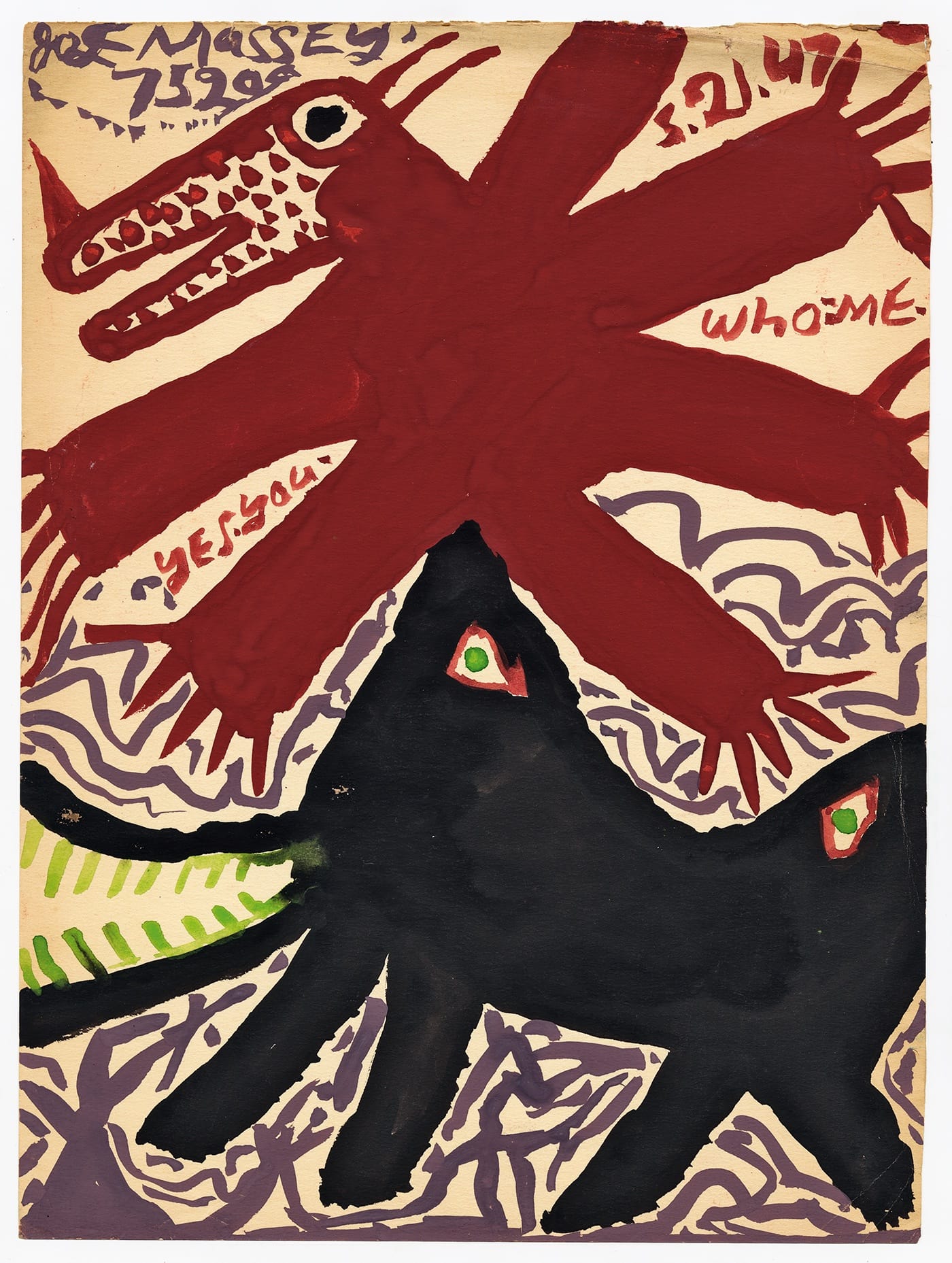 Ford and his cohorts were probably also aware of art brut, a label the French artist Jean Dubuffet had assigned, in the mid-1940s, to the hard-to-classify creations of self-taught art-makers. Certainly Massey’s peculiar, captivating pictures fit into such a special category.