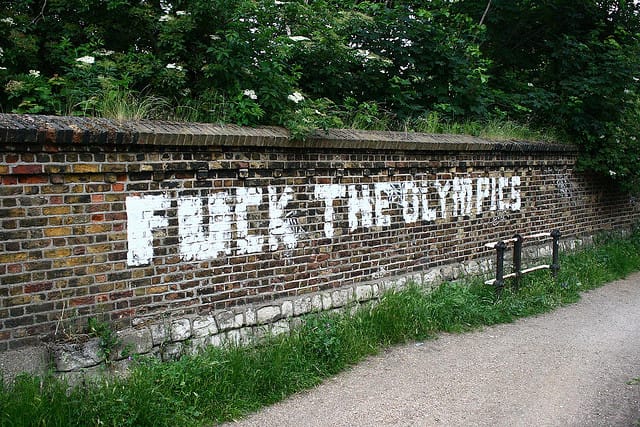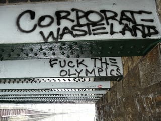 This isn’t the first time street art and the Olympics have caused headlines and media attention. It’s worth nothing that James Powderly of Graffiti Research Lab (GRL) was arrested for planning to project “laser graffiti” during the 2008 Olympics in Beijing.