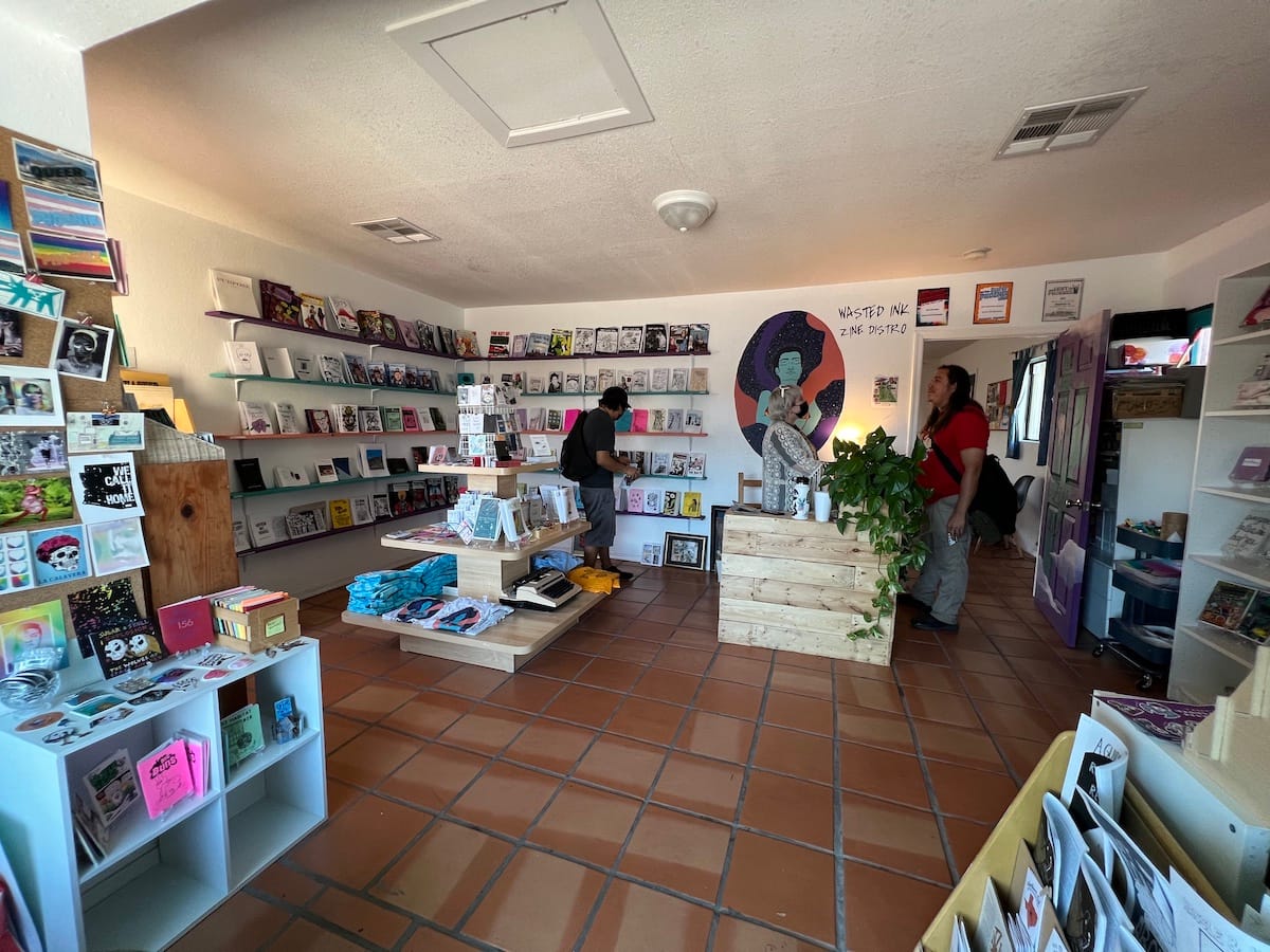 Wasted Ink is part of a cultural hub called Nurture House, which is also home to Palabras Bilingual Bookstore, Pachanga Press, Abalone Mountain Press, an art gallery, and a small mutual aid garden.