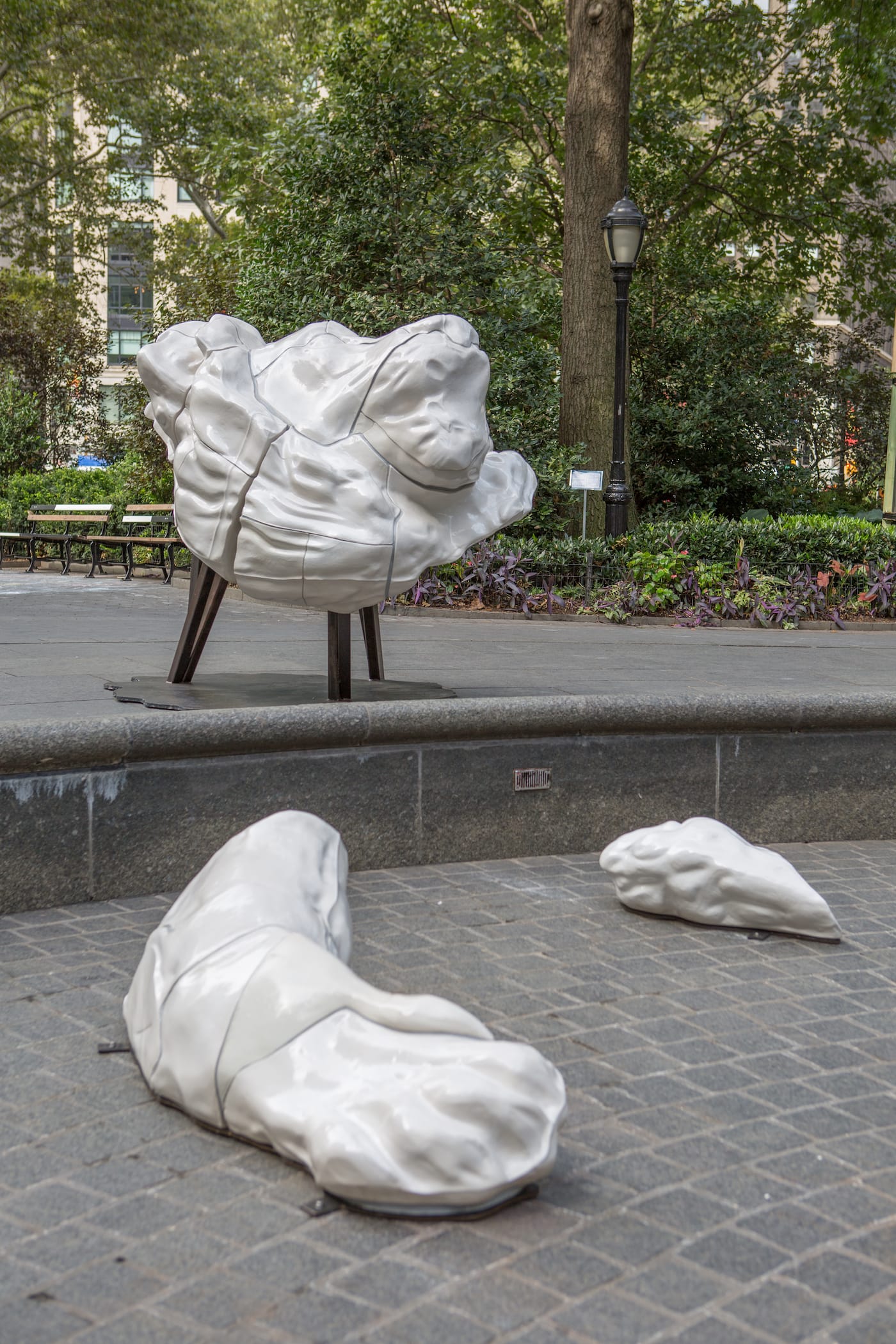 Madison Square Park succeeds for that same reason. In one of the city’s most congested areas, it provide an oasis for the white collar workers and wealthy elites that have populated the Flatiron District for centuries. But ceramicist Arlene Shechet has little interest in padding this peaceful narrative with Full Steam Ahead, an exhibition of public artworks recently commissioned by the Madison Park Conservancy.