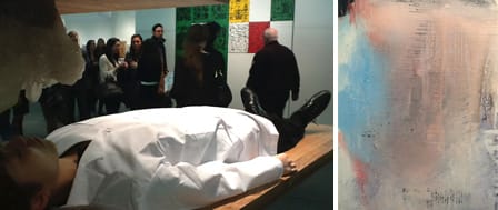 Sean Kelly Gallery boasted a couple of lame Marina Abramović sculptures, two busts with crystals embedded in them (and weakly titled “The Communicators”) — nearby at Luciana Brito a Marina Abramović perfomer lies on a wooden pallet with her head under an outcrop of crystal mirroring the “communicators” theme.
