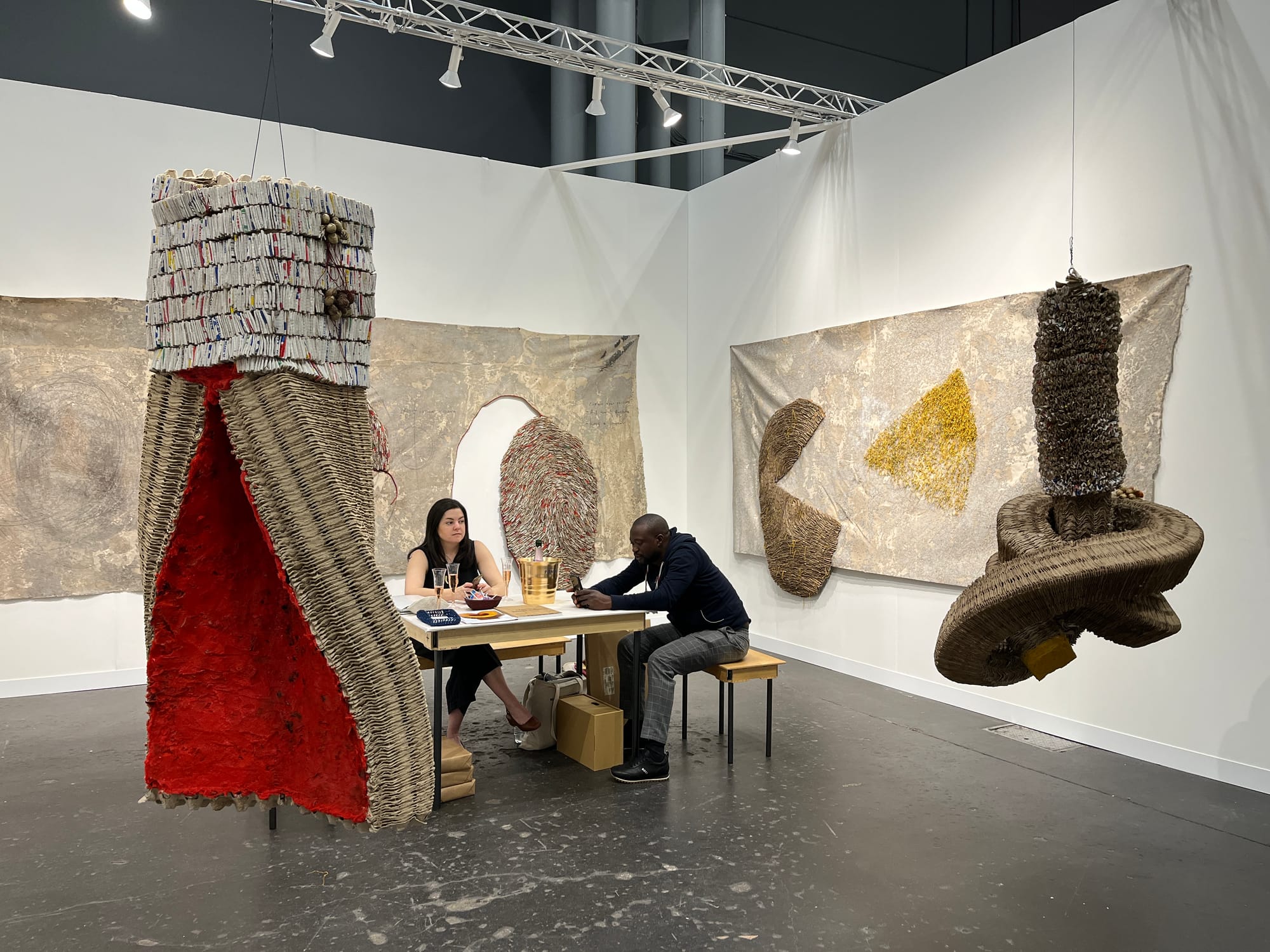 Zimbabwean artist Wallen Mapondera's hanging cardboard sculptures with the South African Smac Gallery are also not to miss. They surface questions of identity, government corruption, and the lingering shadow of colonialism. But mostly, Mapondera shows what wonders can be made with discarded cardboard.