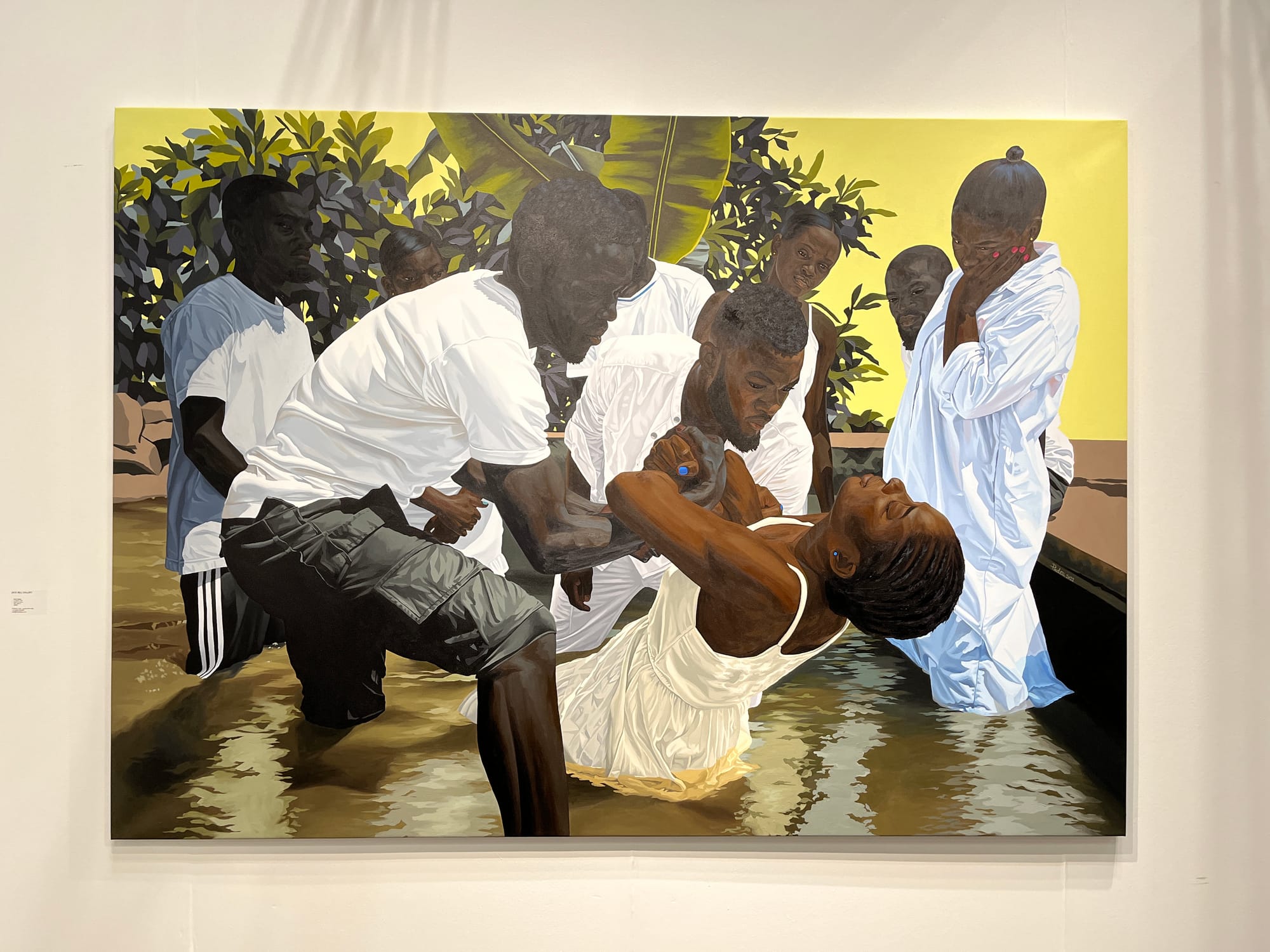 Cameroonian artist Marc Padeu's (Jack Bell Gallery) large-scale paintings, which contemporize and localize Christian tropes like the Last Supper and the baptism of Jesus, are impressive. It’s also hard to dislike Jake Longstreth's Los Angeles Pines series at Nino Mier Gallery, with works that carry that breezy Californian spirit.