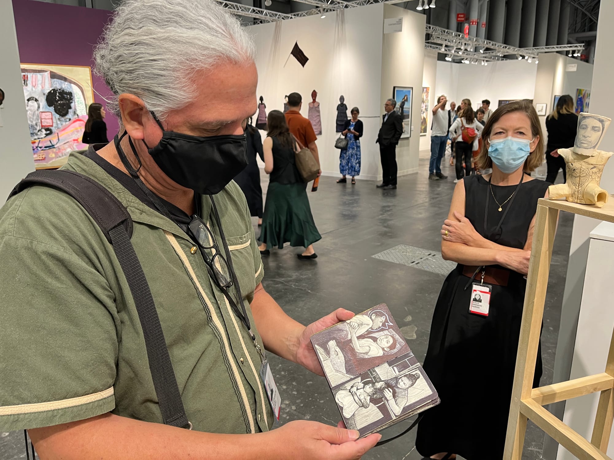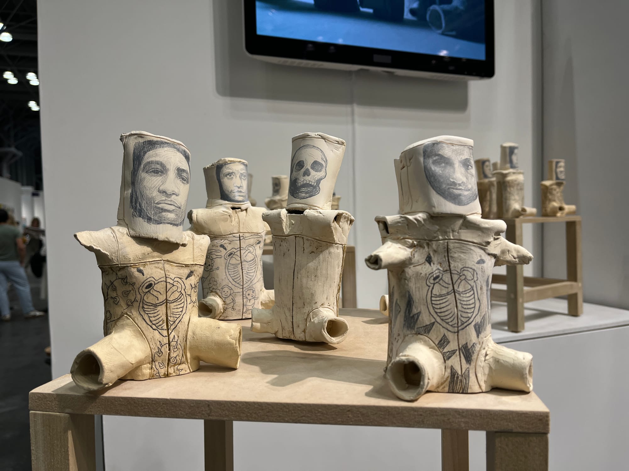 Also worth noting is Tijuana-based artist Hugo Crosthwaite's Caravan series at Pierogi Gallery's booth. Crosthwaite showed me a sketchbook he always carries with him, in which he draws portraits of migrants at the Tijuana-San Diego border. In this series, he transferred these portraits from the sketchbook to small ceramic figures, which he also animated in a stop motion video that depicts the migrants' everyday hardships.
