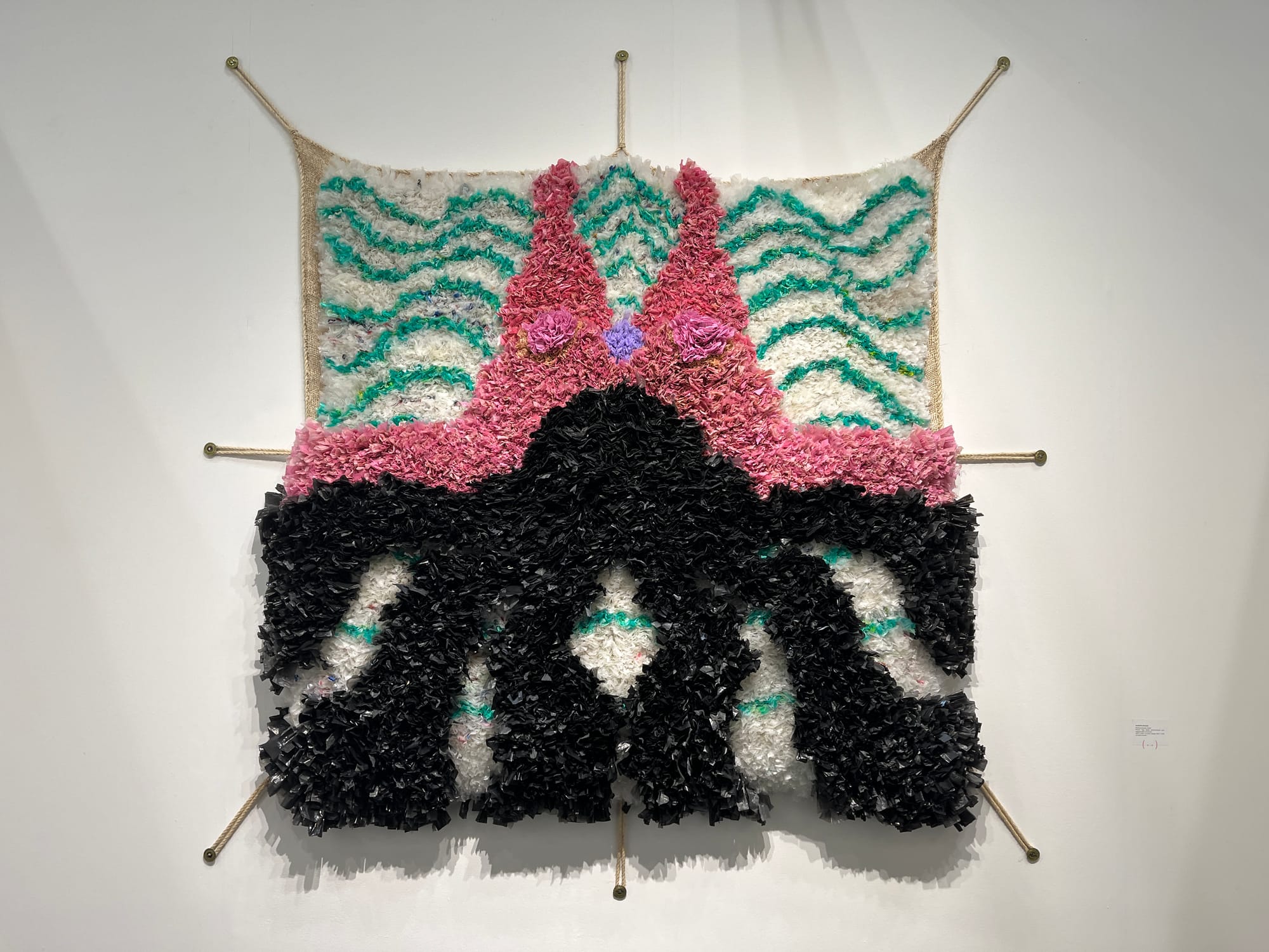 Among the highlights I encountered across the different sections, I can name Mexico City-based artist Aurora Pellizzi's tapestries, made of used plastic bags or dyed wool woven into agave fiber nets (Istle). Pellizzi's works are featured at the booth of Instituto de Visión, a women-led gallery in Bogotá, Colombia and New York City.
