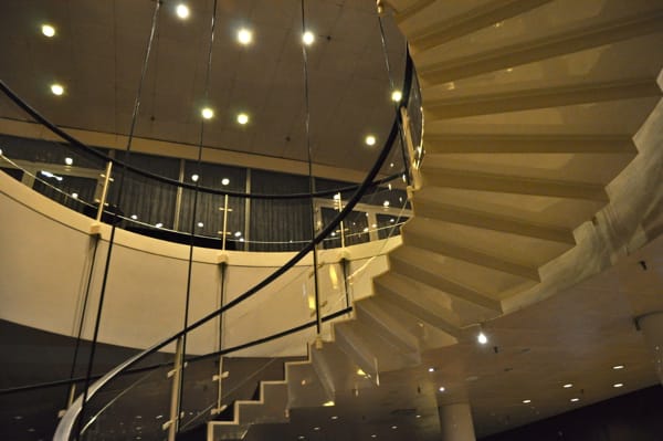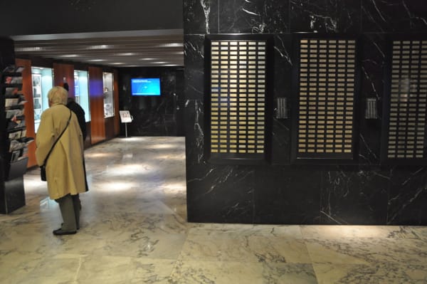 Only the main entrance, with its large gold dots that wrap around the glass walls and doors, and the suspended staircase, which spirals upwards to a meeting/conference area, provide the interior with timeless accents. Perhaps it is because this building and its objects have been copied so many times since it opened over 50 years ago, but the sense of wow this space probably evoked has since dissipated.