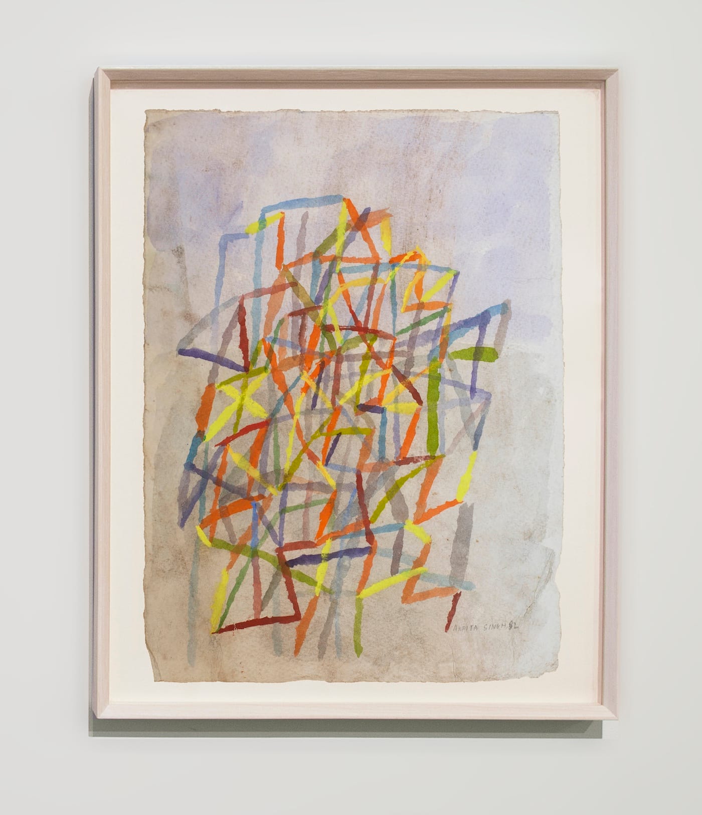 At the same time, there are works done in pastel and poster paint full of marks as delicate and resilient as dandelion fluff. In other works, she uses watercolor to build an open, precarious structure of different colors. After nearly a decade of limiting her marks, Singh returned to figurative painting with a vocabulary of abstract marks. It seems to me that Singh should be known internationally. Her figurative paintings and these abstract works on paper add up to an extraordinary achievement.