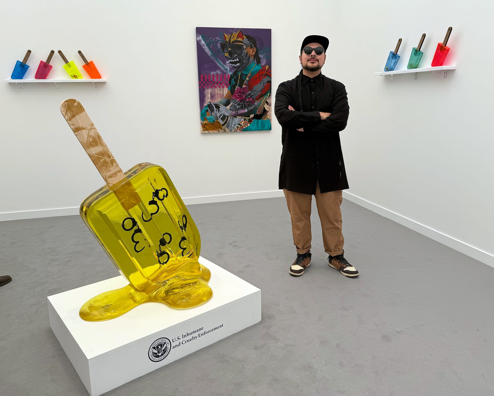 Victor “Marka27” Quiñonez, whose I.C.E. SCREAM (2025) series of neon-hued resin paletas, or ice pops, relabels the immigration and customs enforcement agency as “U.S. Inhumane and Cruelty Enforcement,” took home the fair’s 2025 Impact Prize.