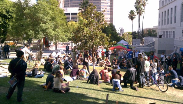 Occupy LA continues and it has a website, occupylosangeles.org, and Twitter hashtag, #OccupyLA. Tune in.