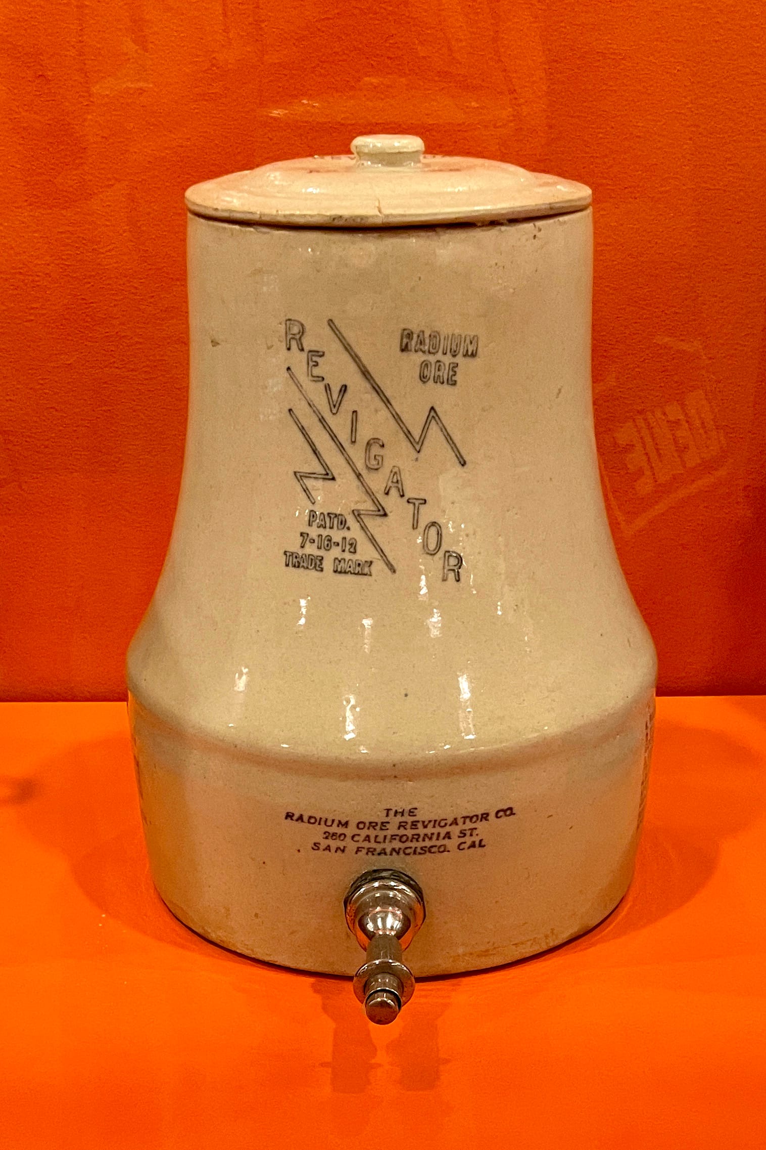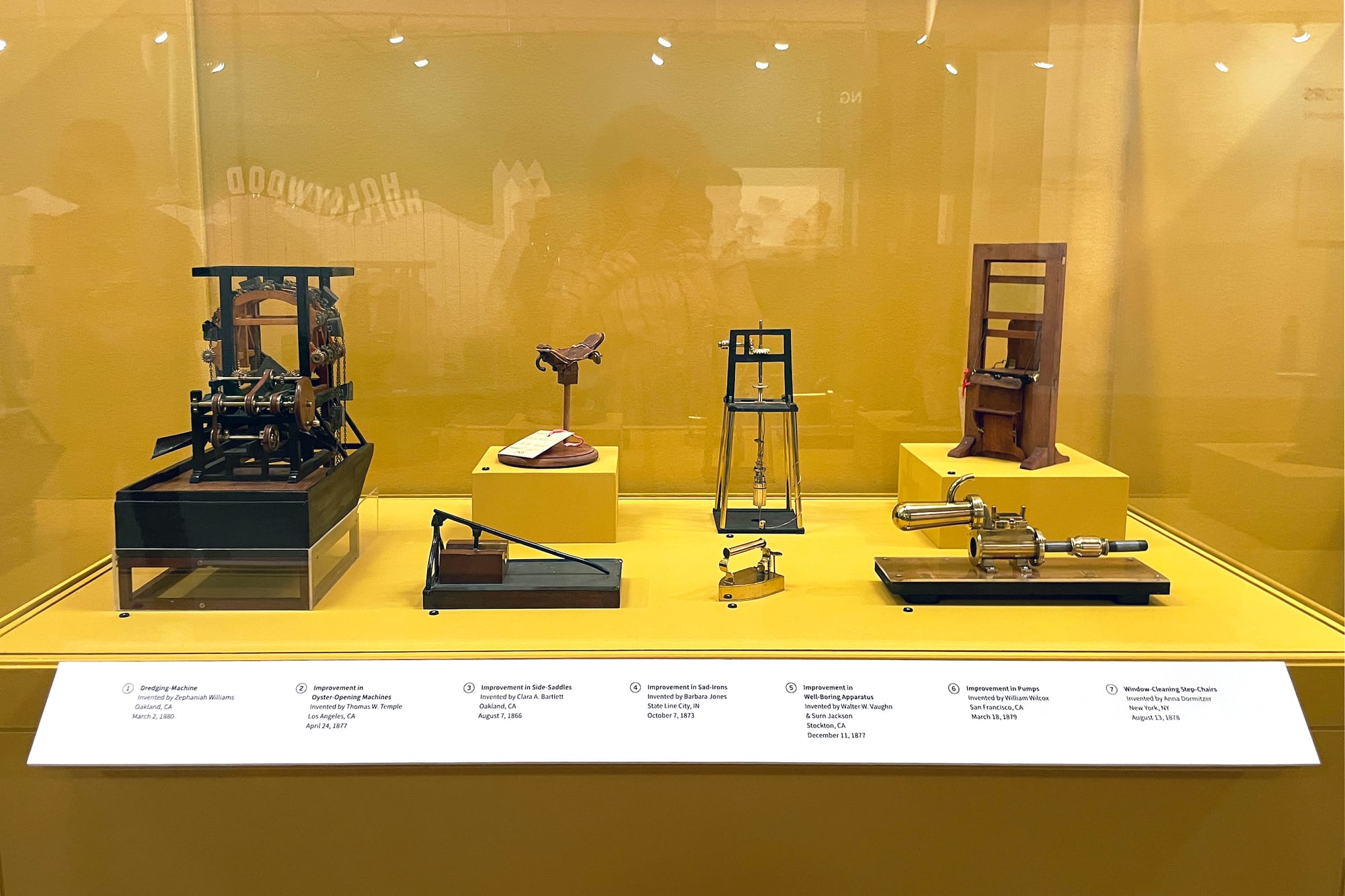 The overall exhibition celebrates innovators who don’t come from a typical industrial design or engineering background. The library’s patent collection includes plants, and one wall is dedicated to photographs of new fruits and roses amateur horticulturists have grown in their backyards. Another display features patent models from the 19th century — miniature, three-dimensional drafts of side saddles and irons that were once necessary to submit with a patent illustration. A third section highlights quack science, where snake-oil inventions like the “Radium Ore Revigator” (1912) — a radium and uranium-lined jug that supposedly added more energy to water — sit alongside earnest yet misguided early medical devices.
