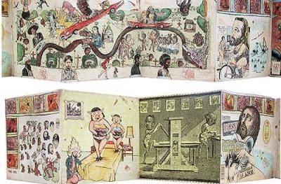 Kathleen Folden, 56, of Kalispell, Montana, has been charged with attacking an art work by California-based artist Enrique Chagoya with a crowbar while it was on display in the Loveland Museum Gallery in Loveland, Colorado. The 12-panel lithograph, according to the artist’s statement to FoxNews, depicts “no nudity, or genitals, or explicit sexual contact” and portrays “a dressed woman, a religious icon’s head, a man showing his tongue, and a skull of a Pope in the upper right corner of the controversial page.”