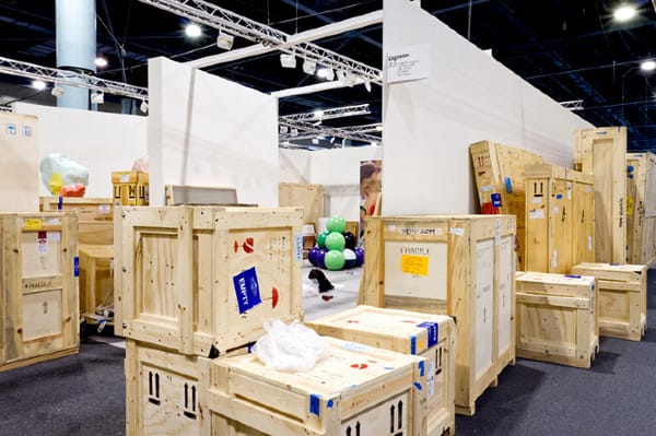 Brooklyn-based artist Jacob Krupnick had the opportunity to spend the day after the Art Basel Miami Beach fair closed inside the convention center dodging forklifts and documenting the breakdown of the fair. “It’s that rare moment when lots of valuables are at risk and in motion,” he told me over email. “The amazing piles of crates and packing materials make it hard to pin down what, exactly, an art piece is. (One forklift operator pointed at a stack of shipping containers he’d arranged, and said without sarcasm: ‘This is my art.’)”