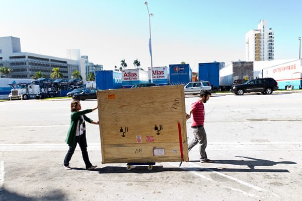 Brooklyn-based artist Jacob Krupnick had the opportunity to spend the day after the Art Basel Miami Beach fair closed inside the convention center dodging forklifts and documenting the breakdown of the fair [http://portfolio.jacobkrupnick.com/#842578/After-The-Art-Fair]. "It's that rare moment when