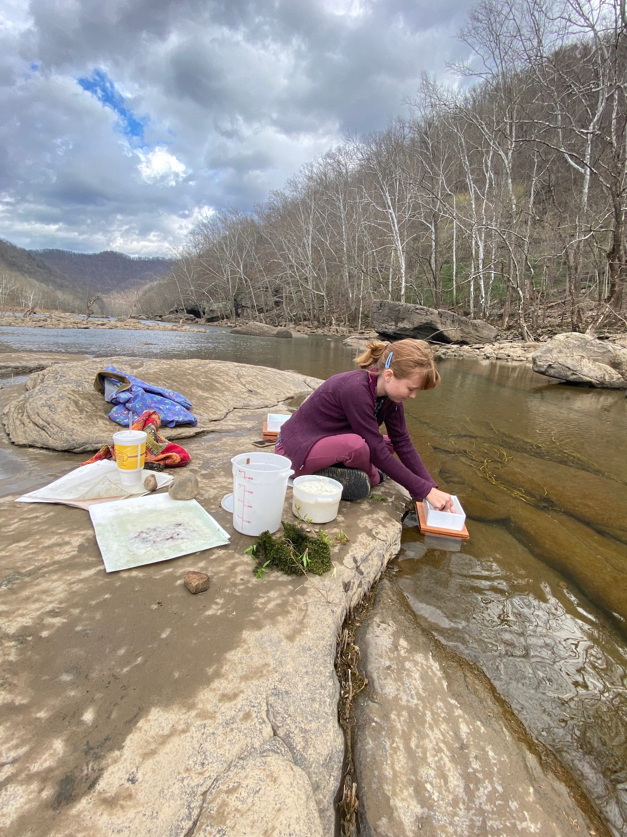 In addition to her in-studio work, Nevada Tribble takes her paper making on location to West Virginia’s streams and rivers (courtesy Nevada Tribble)