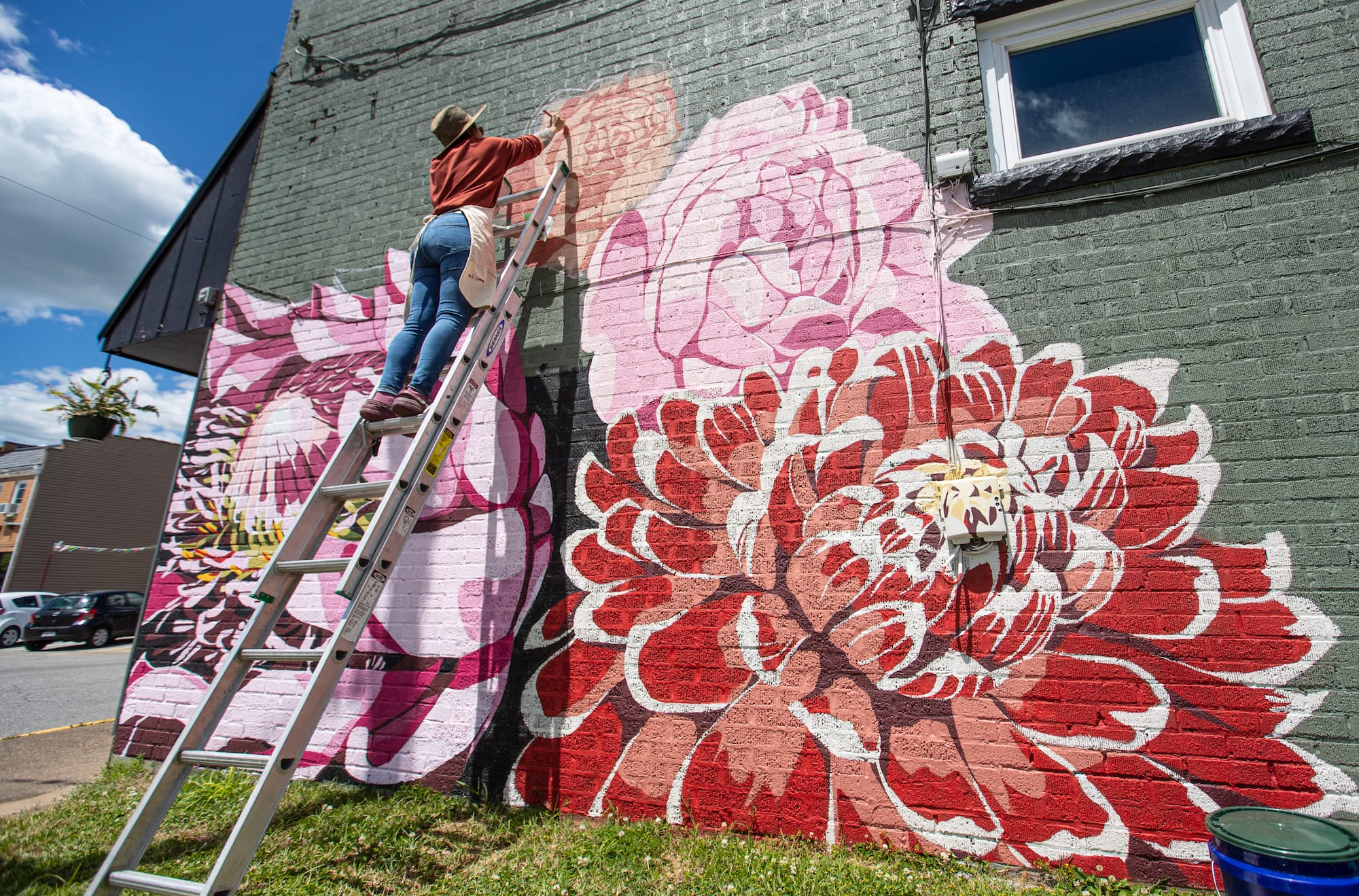Nichole Westfall at work creating a floral mural (courtesy Nichole Westfall)