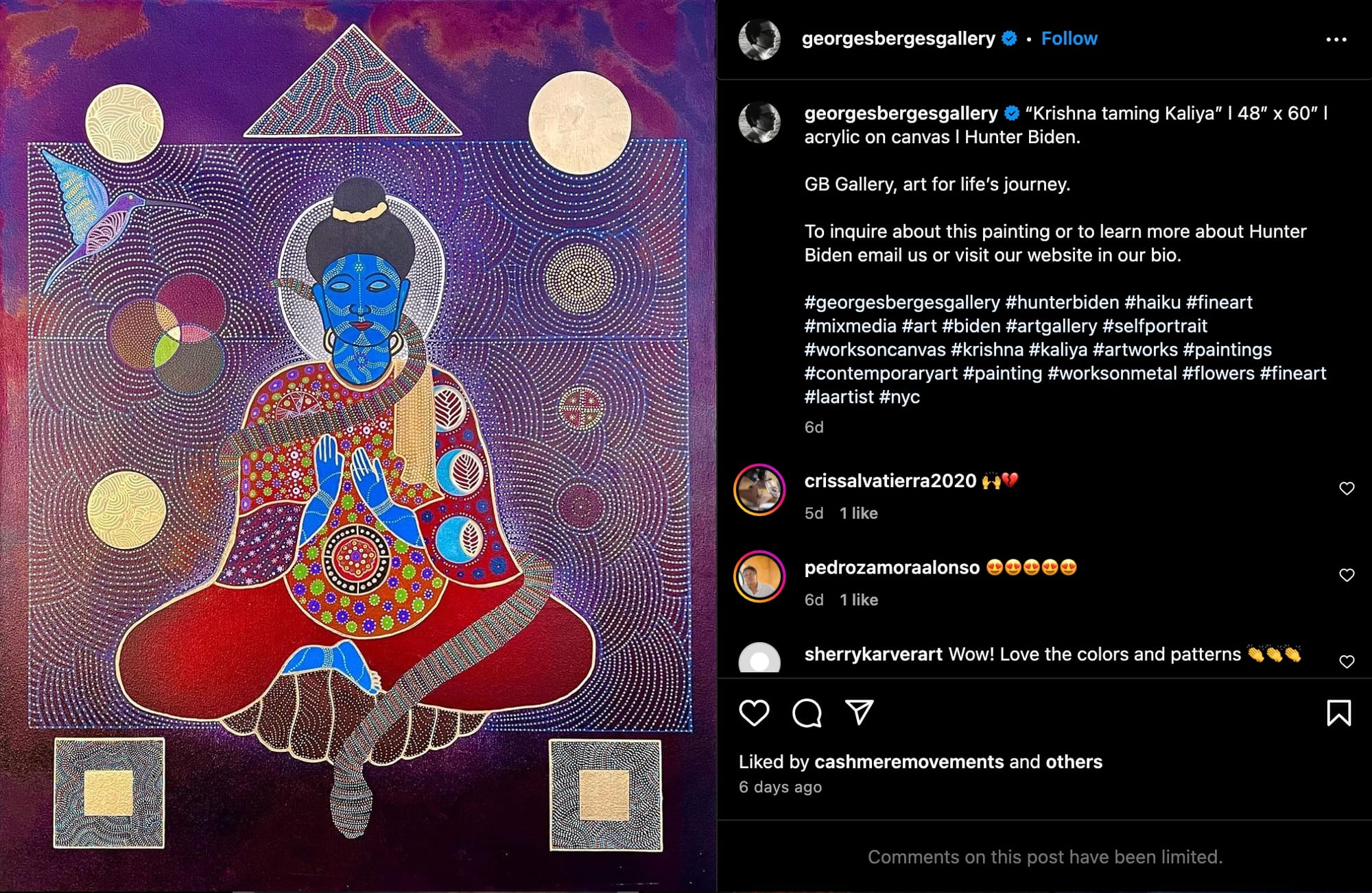 The HCOA pivoted its investigation of the Biden family's political influence to examine Hunter's art career after Naftali was revealed as a buyer, claiming that Bergès was not complying with its requests to disclose collector information earlier in 2023. Entertainment lawyer Kevin Morris, a close friend and financial supporter of Biden's, reportedly purchased $875,000 worth of artwork in 2023 as well. Neither Naftali nor Morris have returned Hyperallergic's comment request.