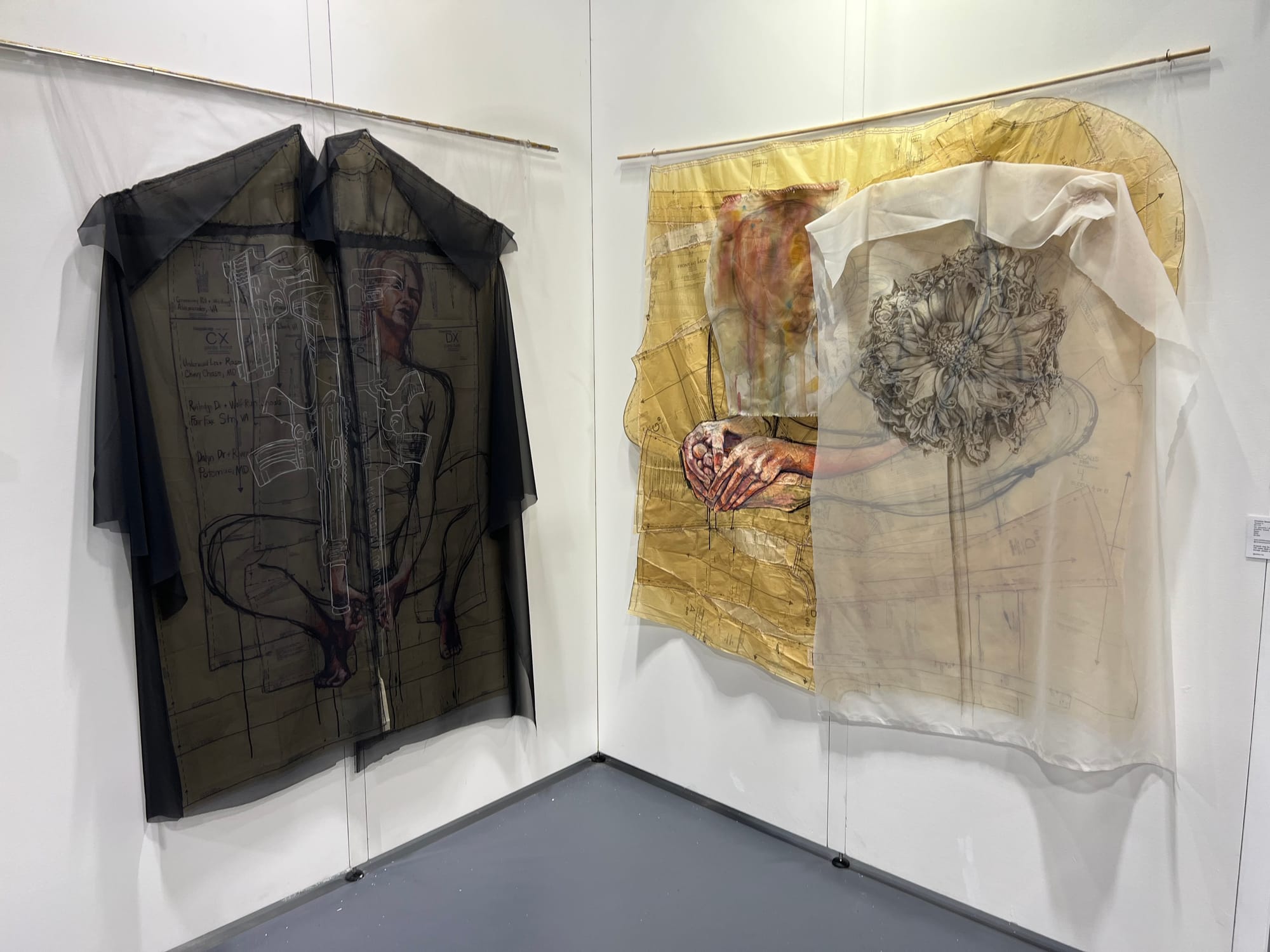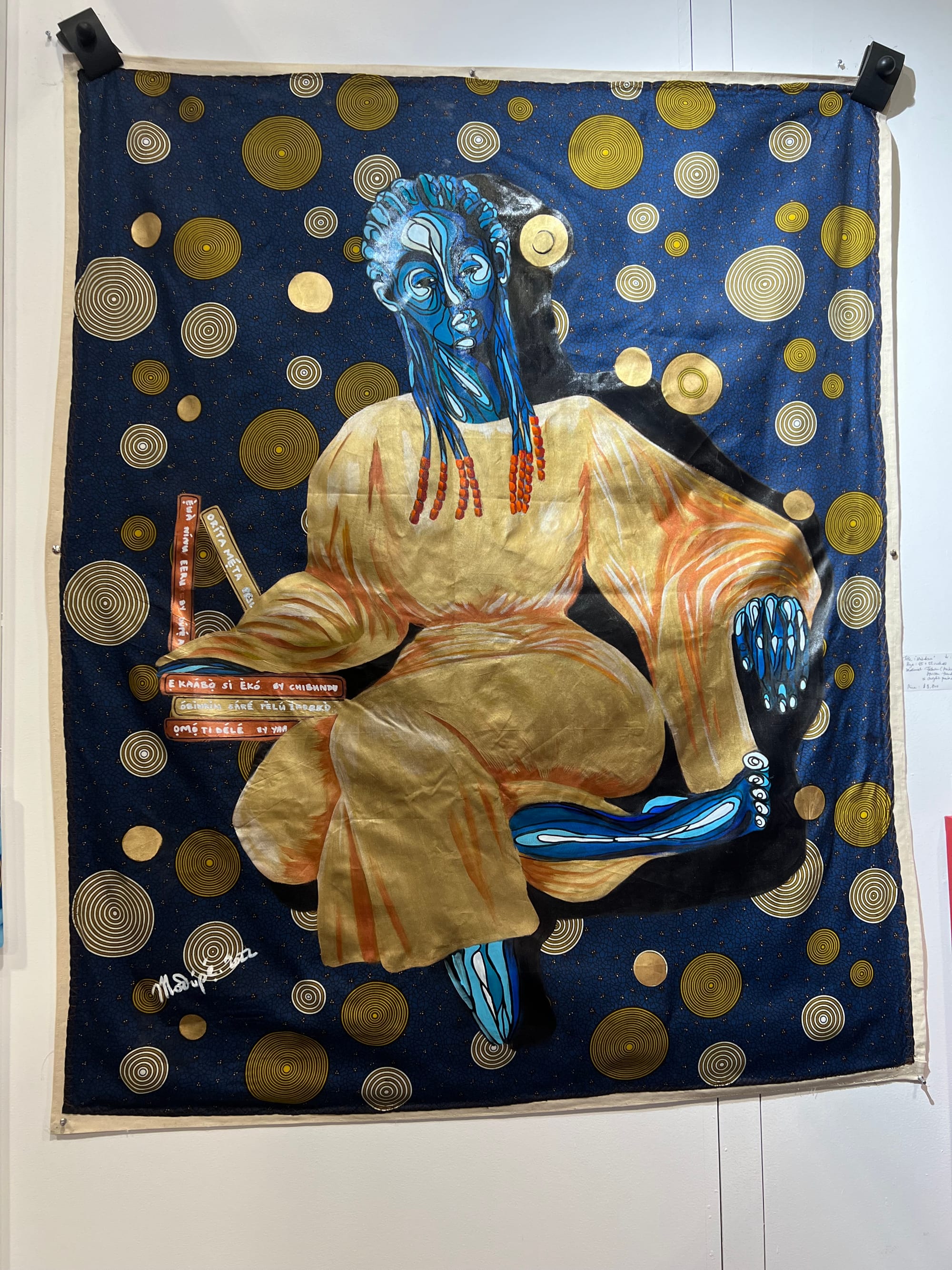 For some recently emigrated artists, 14C is one of their first in-person events. Bridgewater-based Nigerian artist Modupe Odusote claims she recently taught herself to paint, but she has already boldly reclaimed Picasso’s “Les Demoiselles d’Avignon”(1907) for African women and swapped canvas for traditional ankara fabric. She claims the early days of the pandemic gave her the courage to do so.