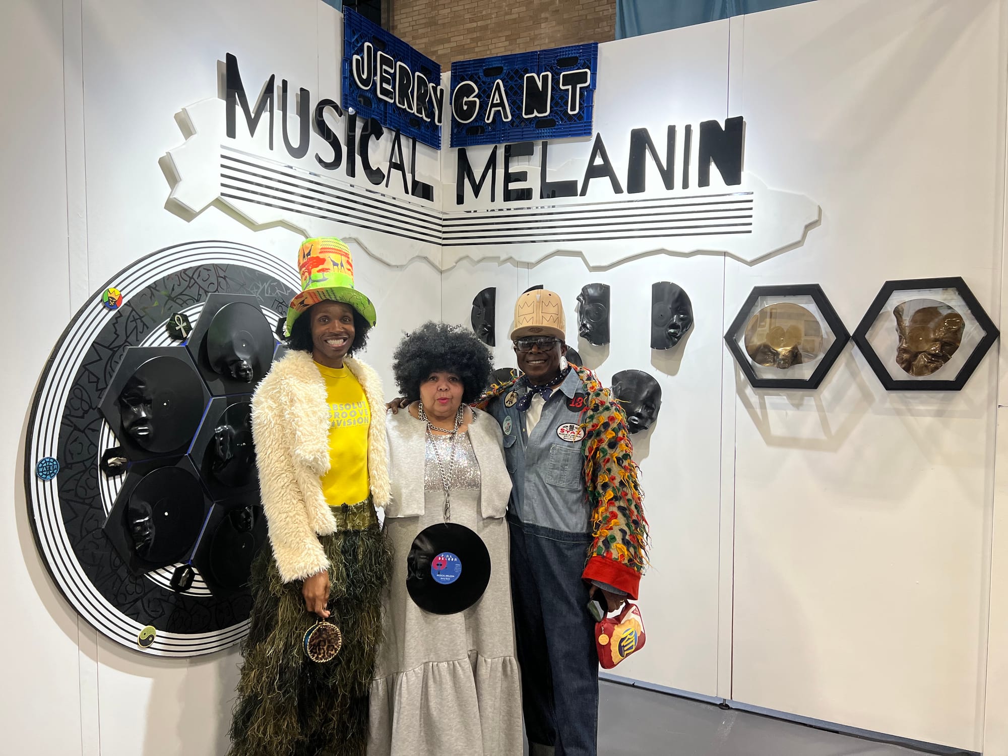 Several presentations this year aimed to preserve the legacy of recently deceased artists. Linda Street of the Pink Dragon Artist Syndicate dedicated hers to Newark artist Jerry Gant, who passed away in 2018. Vinyl records appear molded into expressive Black faces, with the artist’s name displayed over fragments of blue milk crates. While some of Gant’s work is in the Newark Museum of Art’s permanent collection, Street claims to have only scratched the surface.