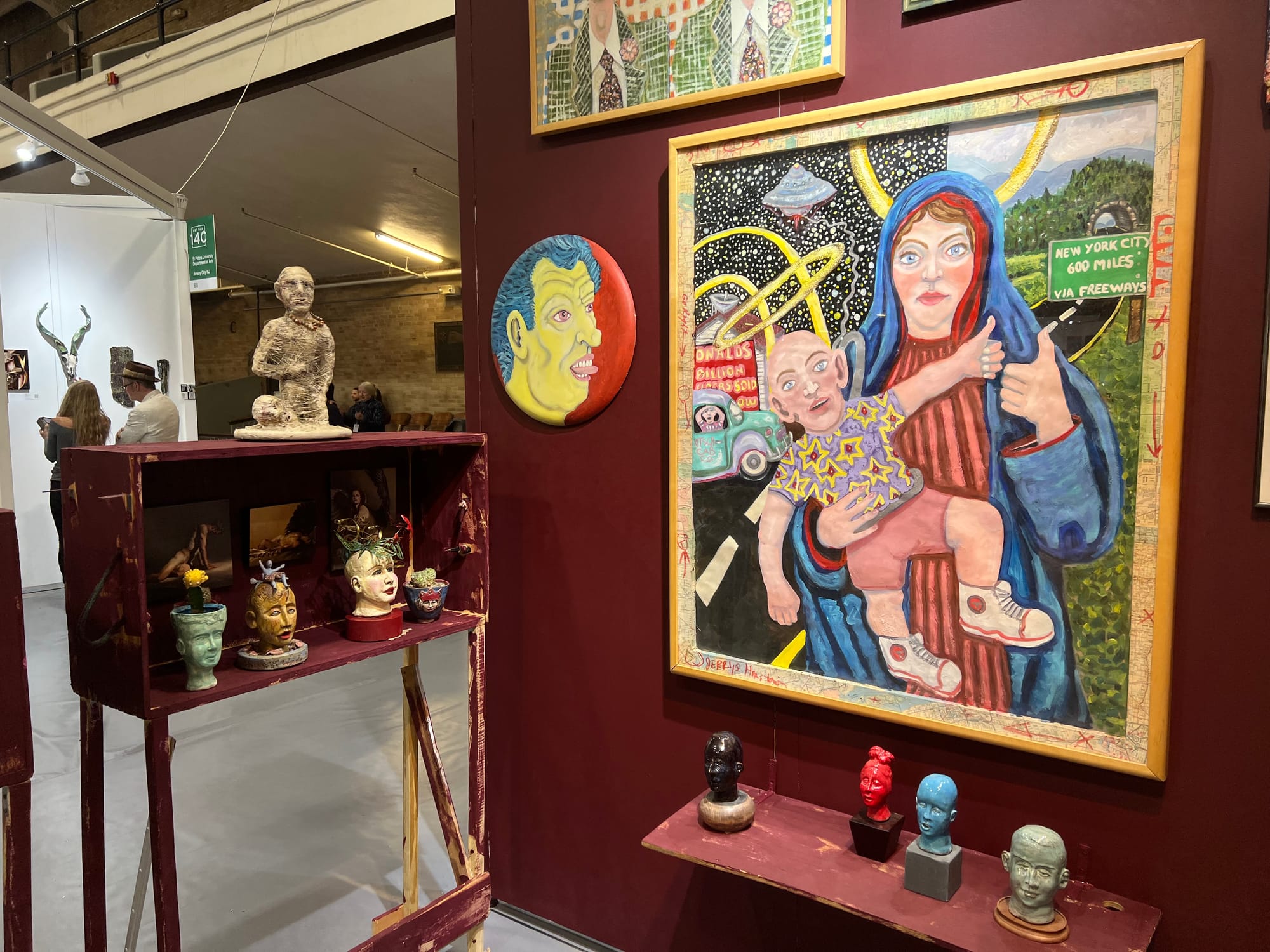 Located in the historic Armory building at McGinley Square and named after Jersey City’s exit on the Turnpike, 14C has also become a destination for locals drawn by the prospect of community and affordability. Low-cost and subsidized booths allow emerging and low-income artists to sell alongside established commercial galleries, with a group exhibition of New Jersey-based artists — a fundraiser of cat artworks — and a booth dedicated to military veterans’ work, among other highlights.