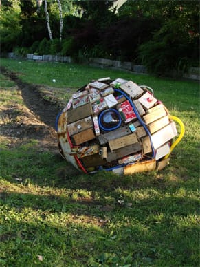 El Anatsui’s notoriety is an exception, however, and the majority of artists working in this genre and with similar such ingenuity, are less recognized. One of them is El Salvadoran artist Simon Vega who uses shipping crates, bottles, signs and old TV’s to create sprawling sculptural installations. His most recent installation at Socrates Sculpture Park in New York City depicts a space module made of crushed soda cans, discarded bottles, iron rods and pieces of found wood that has seemingly crashed in to the earth. The work is impactful, brashly humorous and confident—unusual in the market driven, and therefore often “safer”, contemporary art practices of Europe and North America.