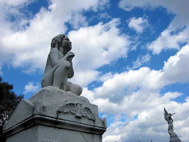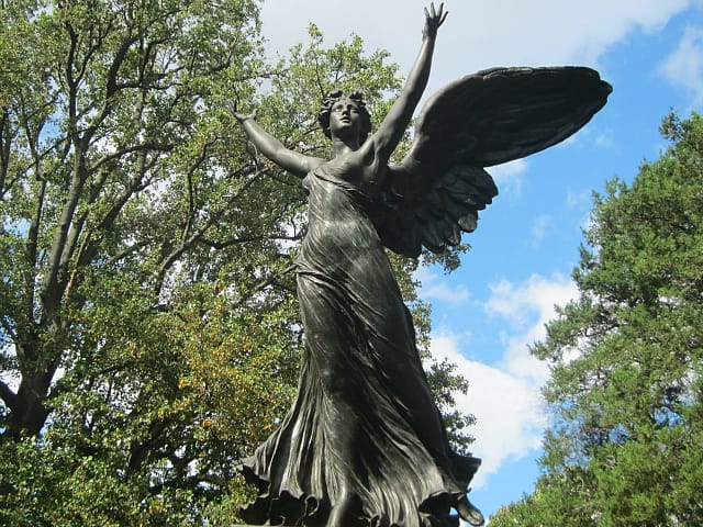 Some of the most beautiful sculpture in New York is dark adornment to the city’s cemeteries, stunning reminders of transience conveyed through the semi-permanence of stone and metal. In each of the five boroughs are these green spaces with their displays of mourning: elegant angels, etched symbols of remembrance and solemn statuary that transmit the stories of the dead, as well as the history of art in the city. While cemeteries are no longer central to our lives in the way they were in the past, when they were the parks and museums where the public would wander, they still offer fascinating explorations into art and the history of New York, where the city’s past sprawls above the bones of its former residents.