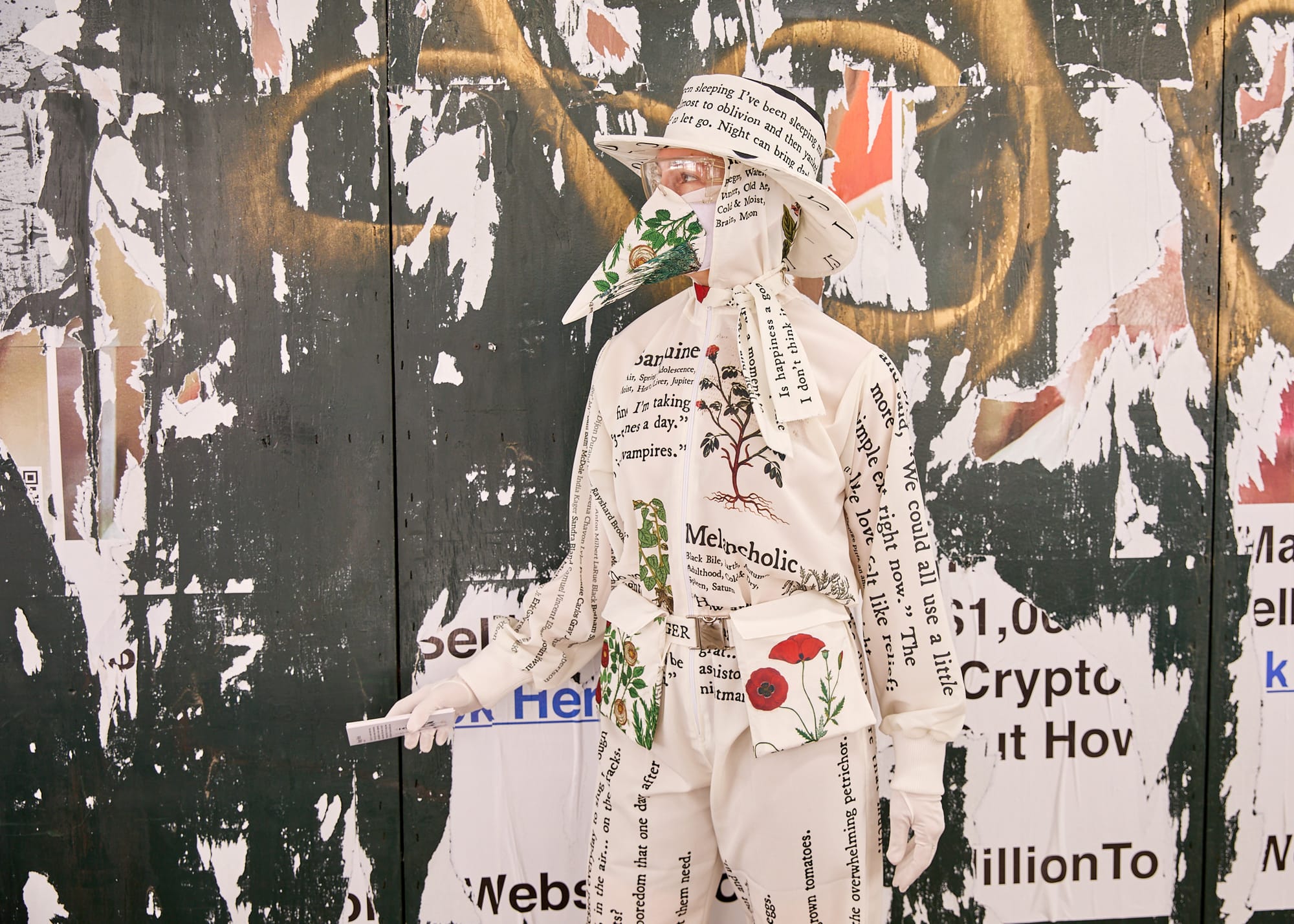 AiOP is an ongoing experiment and exploration of communicating in and with public spaces, specifically set in an urban laboratory. Woodham invited Vitamvas to curate this year's iteration of AiOP after several years of her participating as an artist. Vitamvas, whose personal practice centers on garment-making and patterning, was excited to assign "Dress" as this year's prompt to have artists play with and explore those mediums.