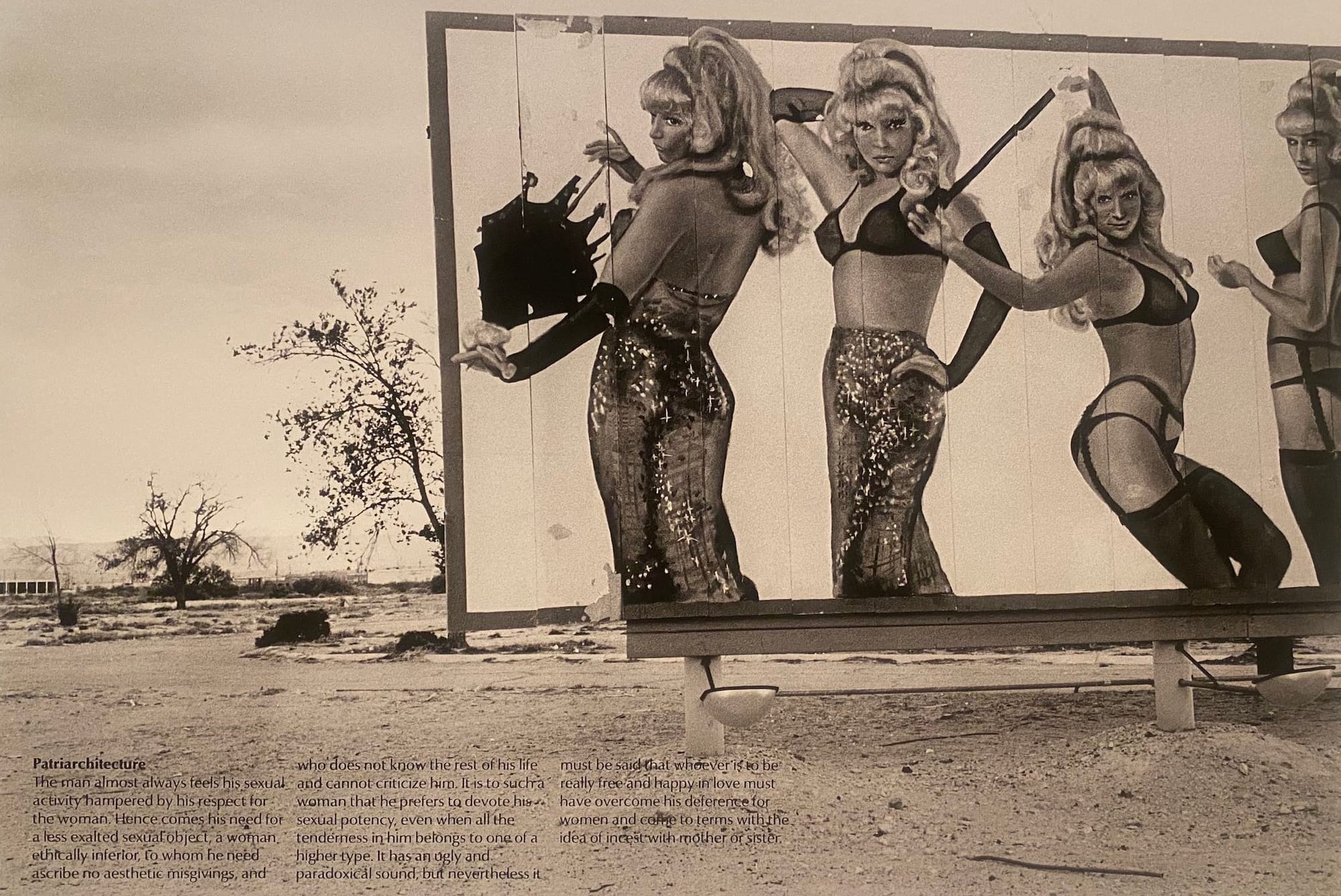 But the show’s smaller works reveal how advertising can have outsize influence on society while being not much larger than a standard sheet of paper. Sherrie Levine’s “President Profile I" (1979, printed 1993), for instance, superimposes a fashion editorial on a 1932 cutout profile of President George Washington by sculptor John Flanagan. Victor Burgin’s series US77 (1977) uses magazine-style spreads to critique gender roles. As one caption in Burgin’s spreads reads, the feminine image of “homemaker” is “an image to which advertisers hypocritically refer as if it were the ringmaster in their circus of commodities, and not one of their clowns.”