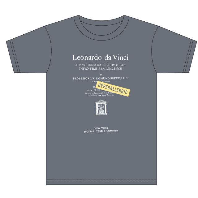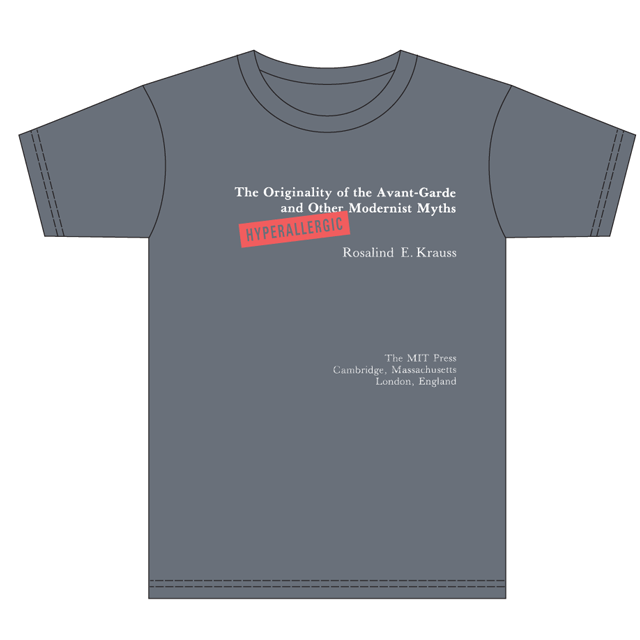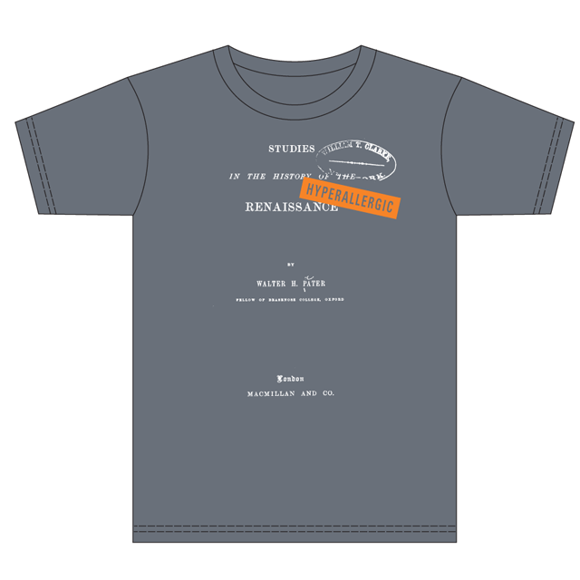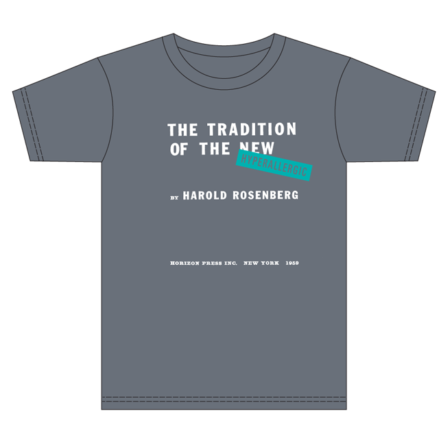 The typographic frontispieces of five important English-language first editions are presented on these t-shirts along with a slap tag of Hyperallergic. Yes, we’ve appropriated them. Yes, we’re happy about it. And yes, we love ALL these books.
