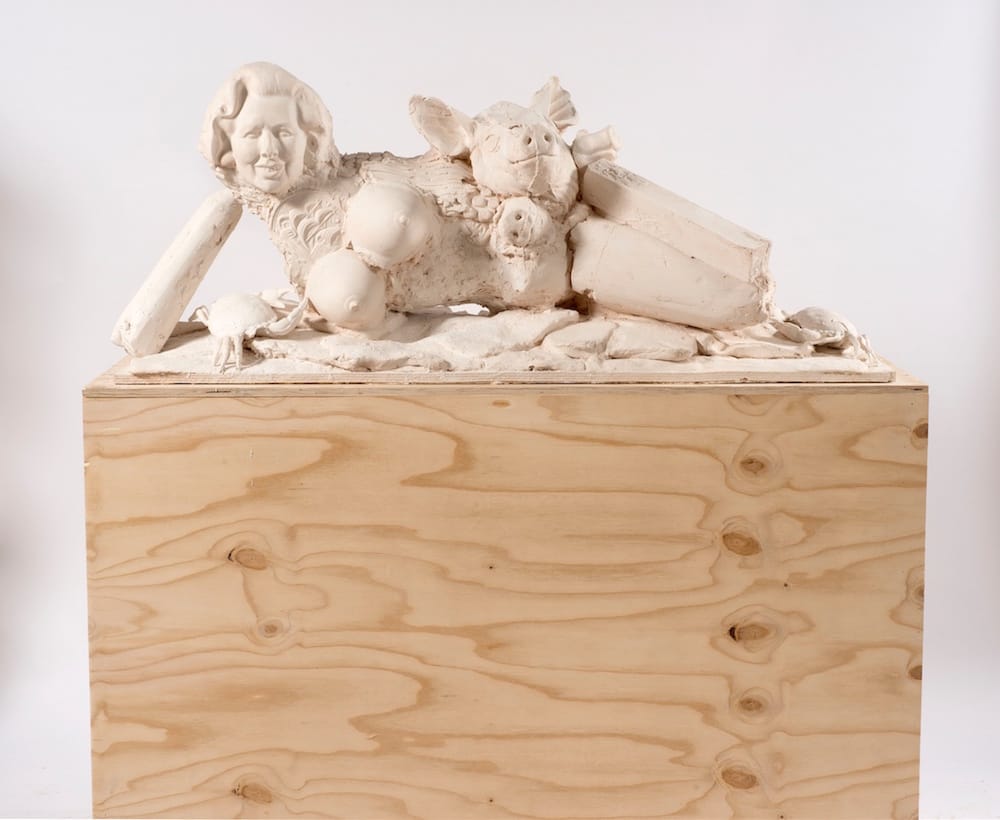 The Jerwood Gallery will stage an exhibition of new works by Marcus Harvey next summer. One of the artist’s recent sculptures, “Maggie Island” (2015), depicts a nude Margaret Thatcher with a pig’s head and some snouts.