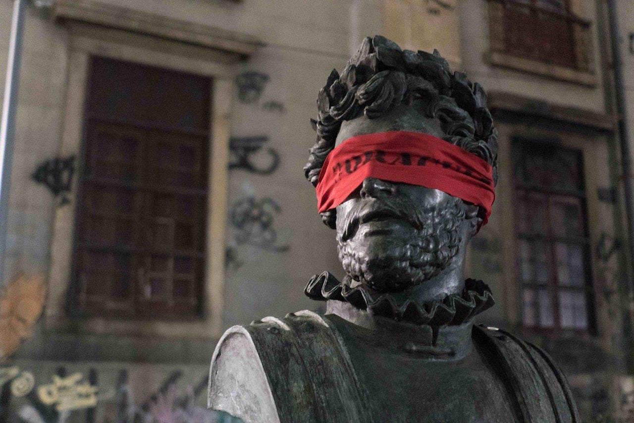 An anonymous artist adorned 100 statues on the streets of Rio de Janeiro with red blindfolds to protest the “shameful state” of Brazil. According to the BBC, the artist — who operates under the name “Oraculo Project” — stated that the work is not connected to ongoing demonstrations calling for the resignation of President Dilma Rousseff.