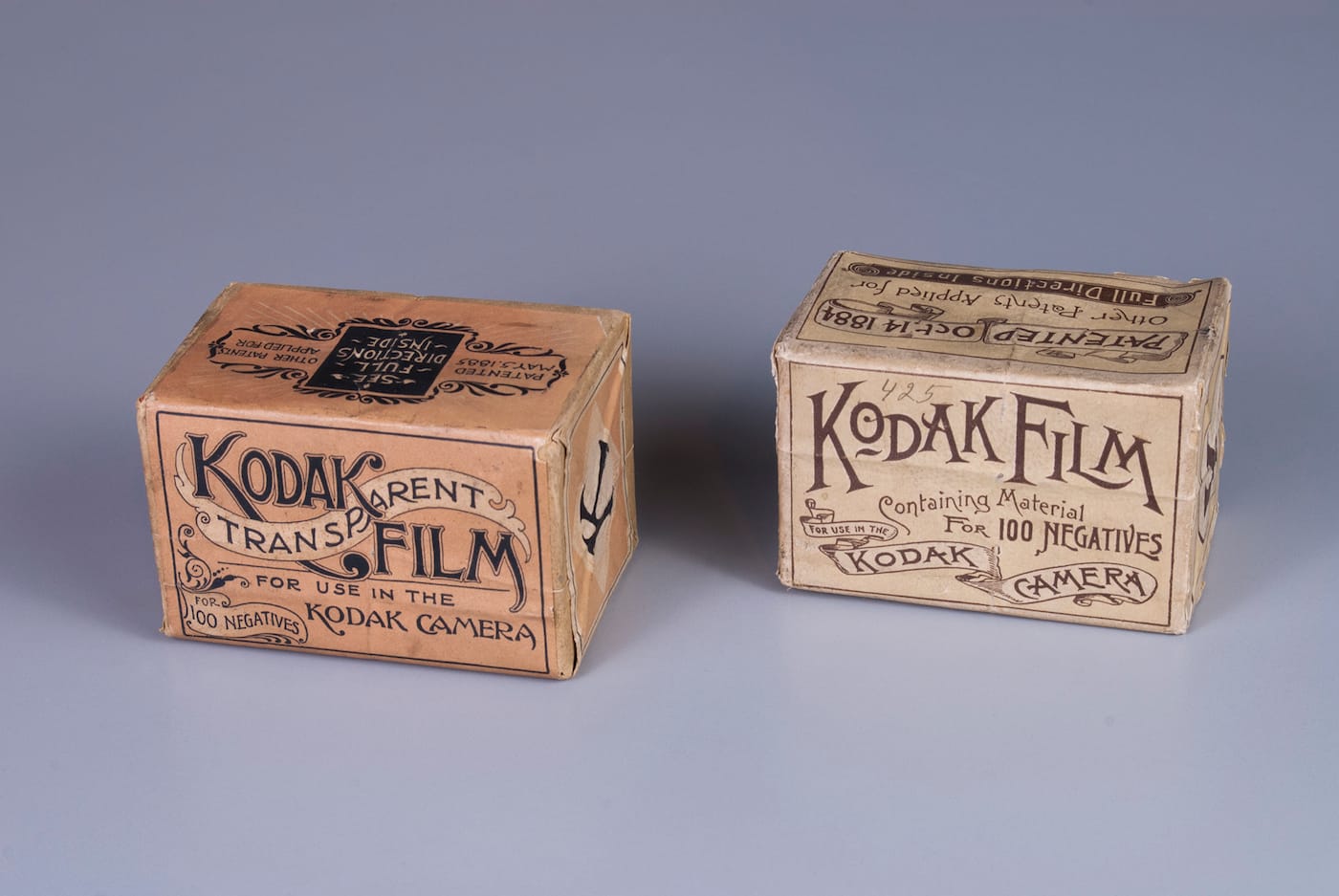 The George Eastman Museum purchased the only known box of Kodak Film manufactured for the Kodak camera (1888), as well as one of three known boxes of Kodak Transparent Film (introduced in 1889).