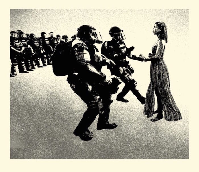 Shepard Fairey “stylized” Jonathan Bachman’s viral photograph of protester Ieshia Evans at a Black Lives Matter protest in Baton Rouge.