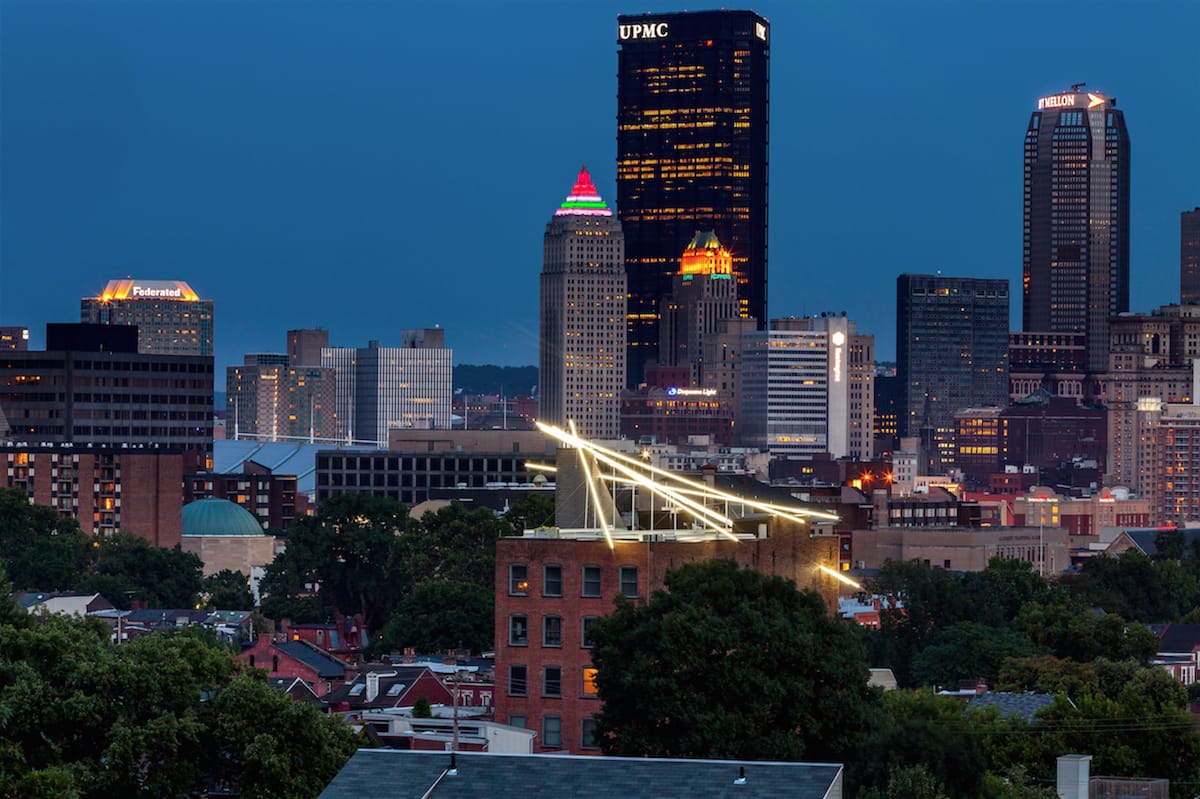The Mattress Factory unveiled “Acupuncture,” a permanent light installation created for the roof of the museum by artist Hans Peter Kuhn.