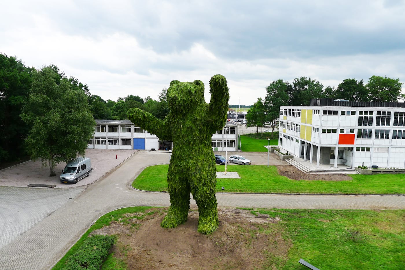 Florentijn Hofman unveiled “Conibeer,” a monumental sculpture of a bear constructed out of conifer tree branches.
