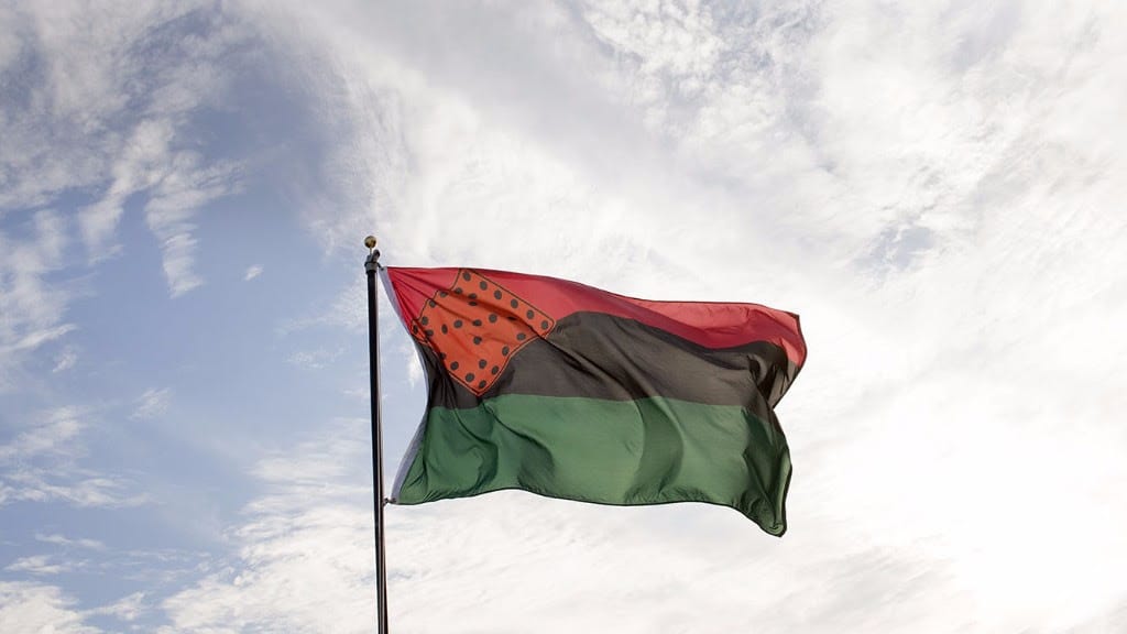 Nari Ward’s “Breathing Flag” was hoisted at four museums across the US as part of Creative Time’s “Pledges of Allegiance” project. The work directly references the tri-color flag of Marcus Garvey’s Universal Negro Improvement Association (UNIA) and includes a rendition of the Congolese Cosmogram. The symbol was drilled into the floor boards of the First African Baptist Church in Savannah, Georgia — one of the oldest African-American churches in the US — where it is thought to have doubled as air holes for runaway slaves passing below.