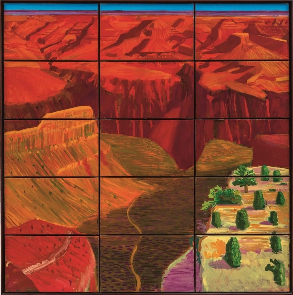 David Hockney’s “15 Canvas Study of the Grand Canyon” (1998) was sold at Sotheby’s evening sale of contemporary art for $7,949,576, the second highest price paid for the artist at auction. The same sale saw records set for Josef Albers, Thierry De Cordier, and Alex Da Corte.