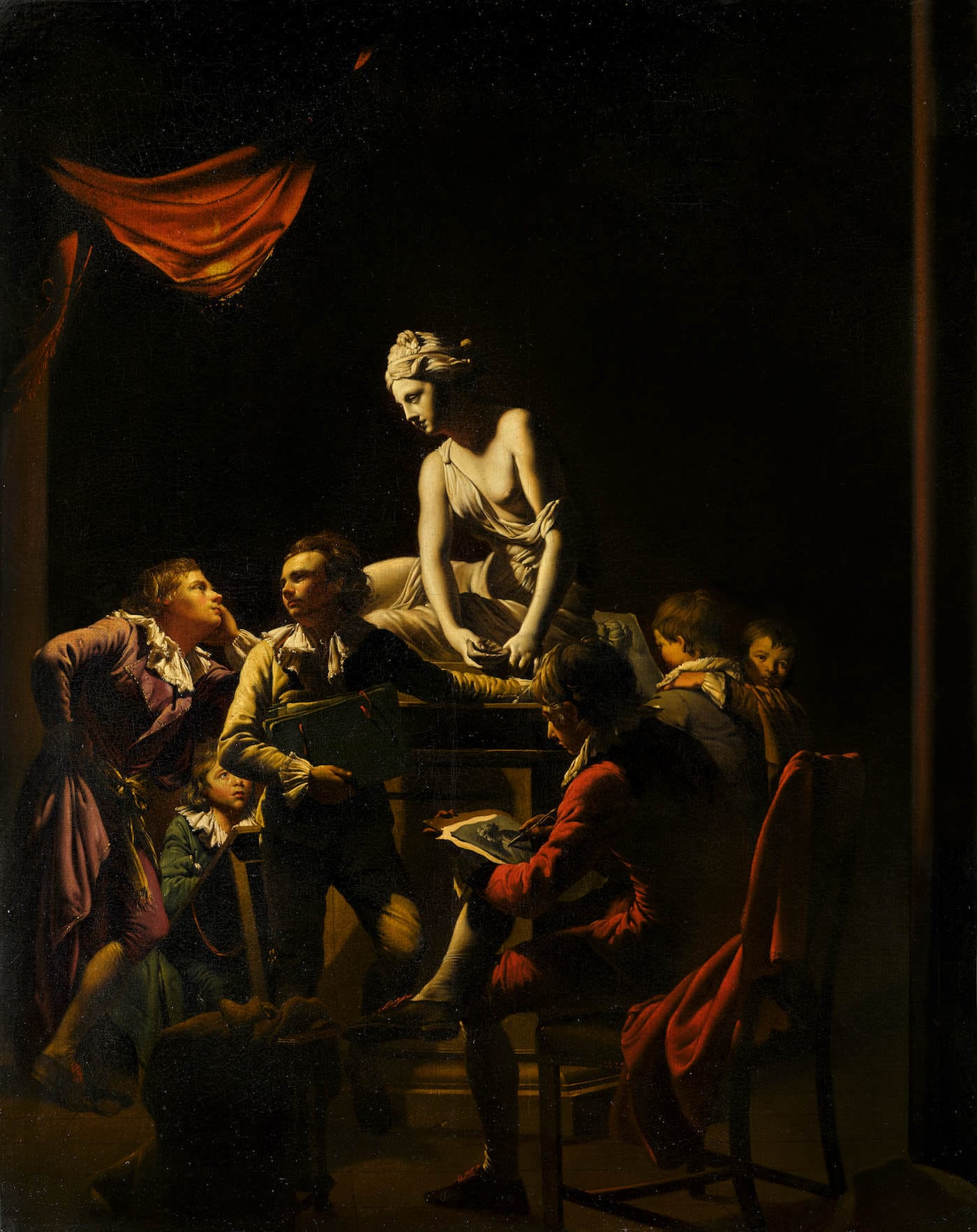 Joseph Wright of Derby’s “An Academy by Lamplight” (1769) was sold at Sotheby’s for $9,736,990 (with buyer’s premium), an auction record for the artist. Wright produced two versions of the painting; the other is on display at the Yale Center for British Art, New Haven.