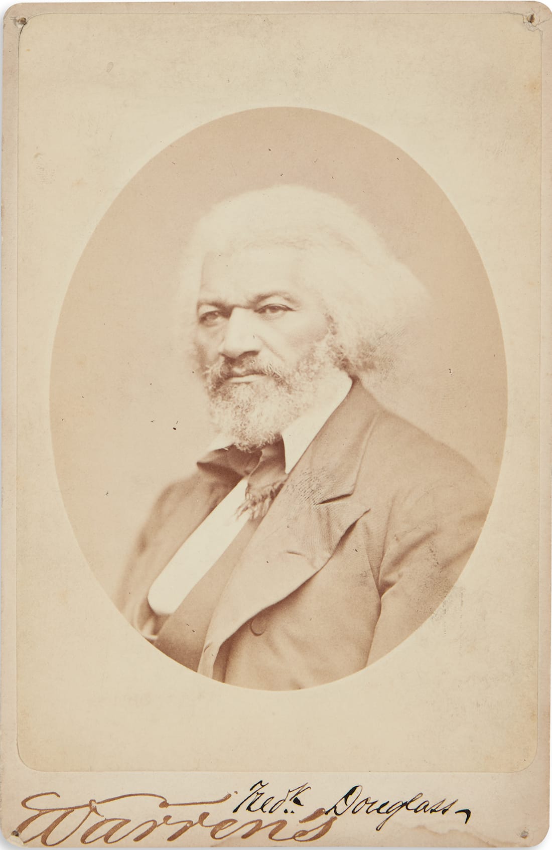 A cabinet card with a photograph of Frederick Douglass was sold at Swann Auction Galleries for $30,000, an auction record for a signed photograph of Douglass.