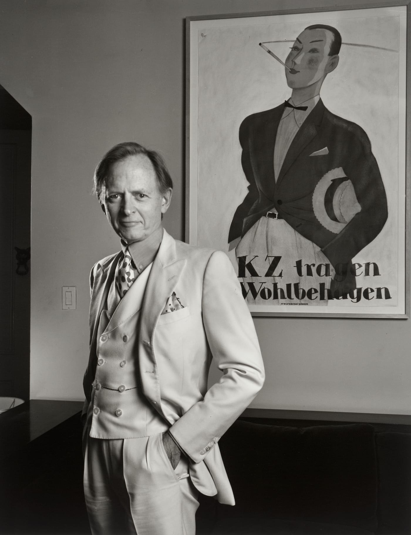 Tom Wolfe (1930–2018), writer and proponent of New Journalism. Best known as the author of The Bonfire of the Vanities (1987) and The Painted Word (1975).
